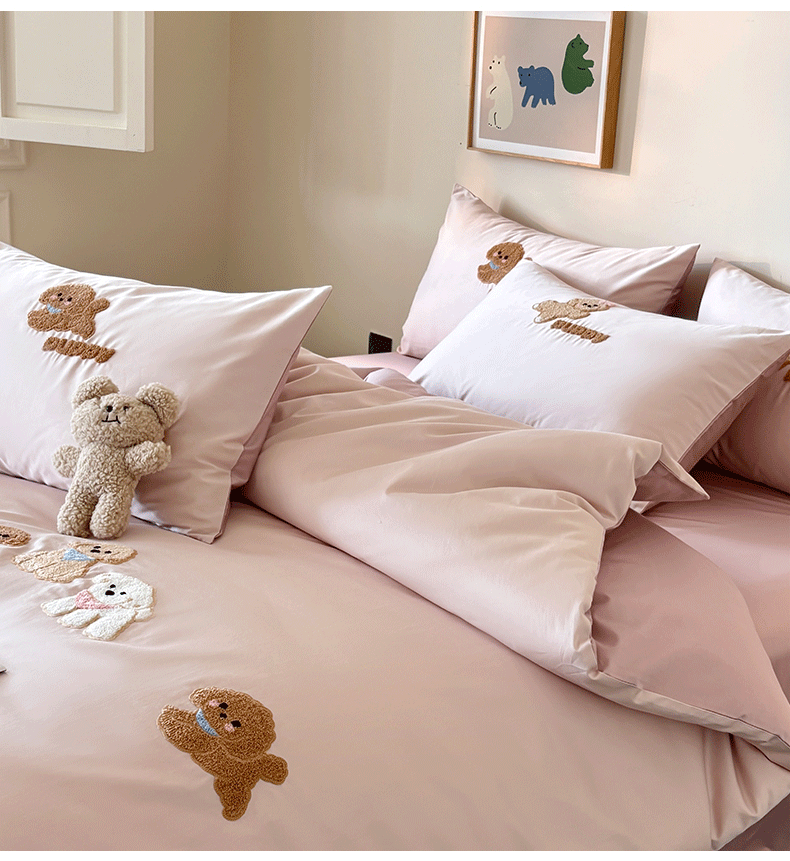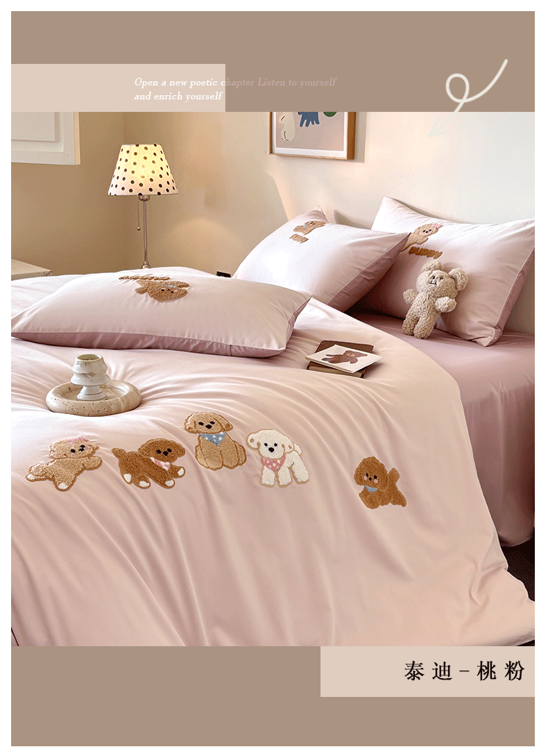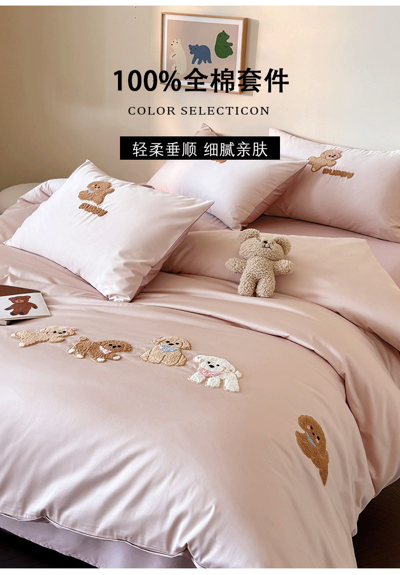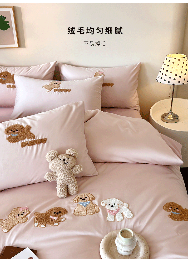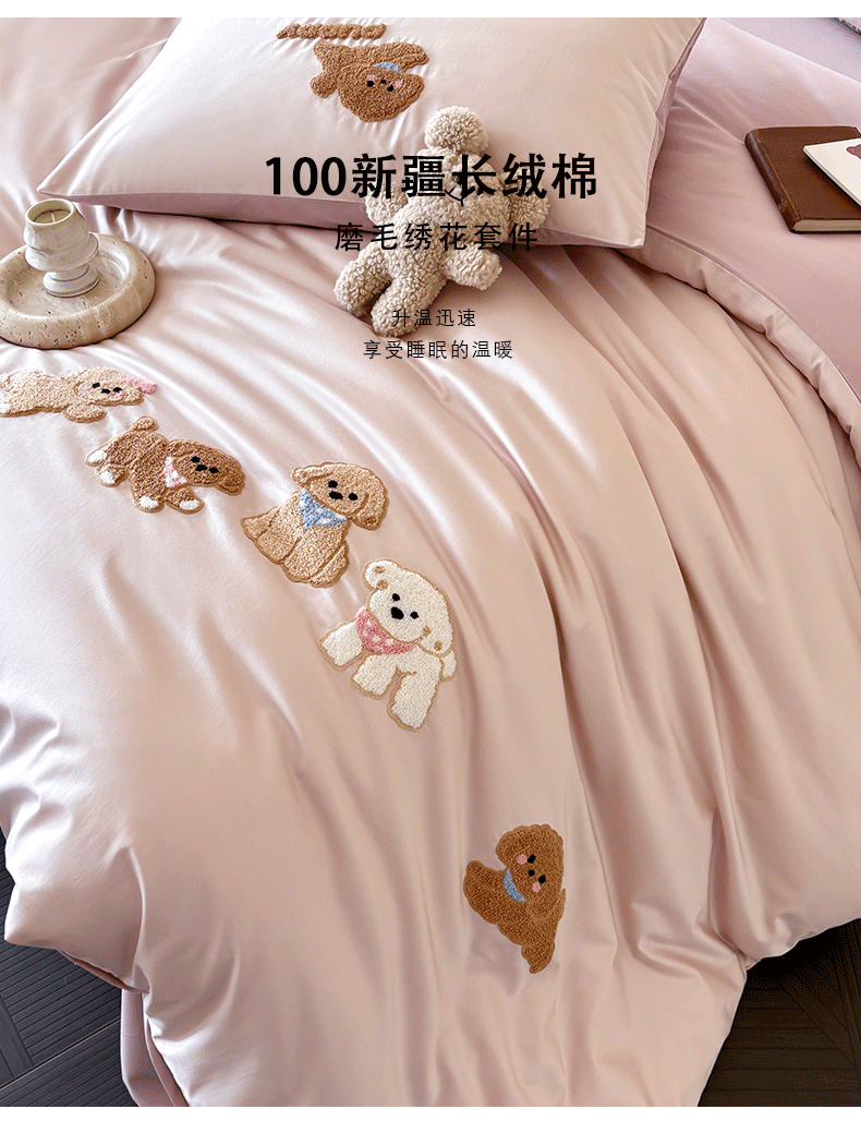 当前位置: 91家纺网 > 商品网购 > 床品套件 > 四件套 > 全棉普通四件套 > (总)618家纺 2026新款A类100支全棉纯棉毛巾绣花四件套-泰迪系列