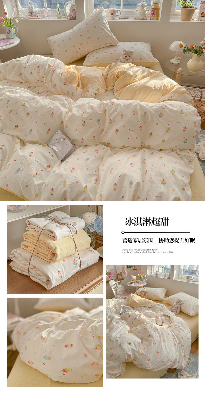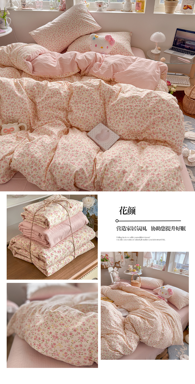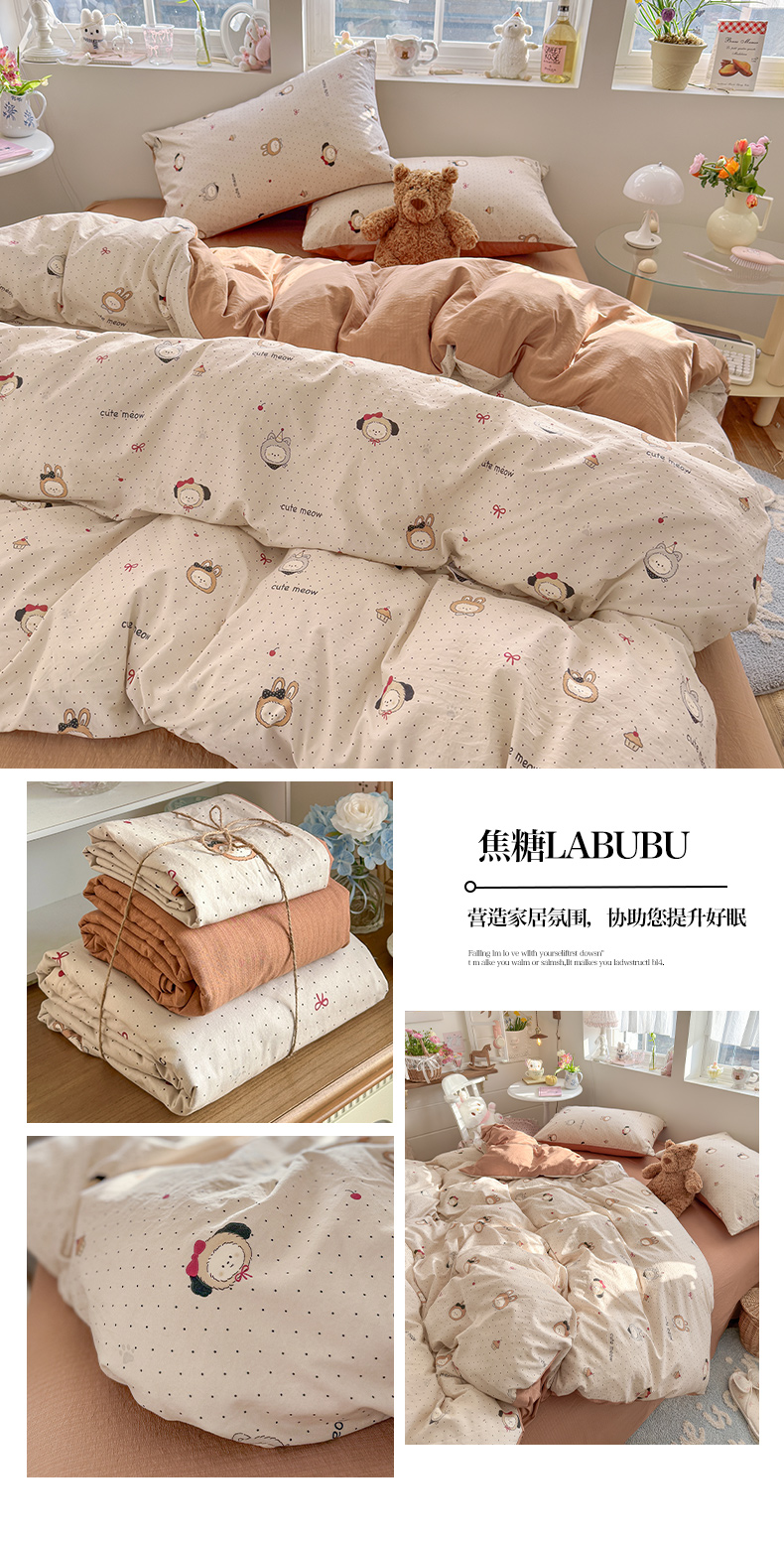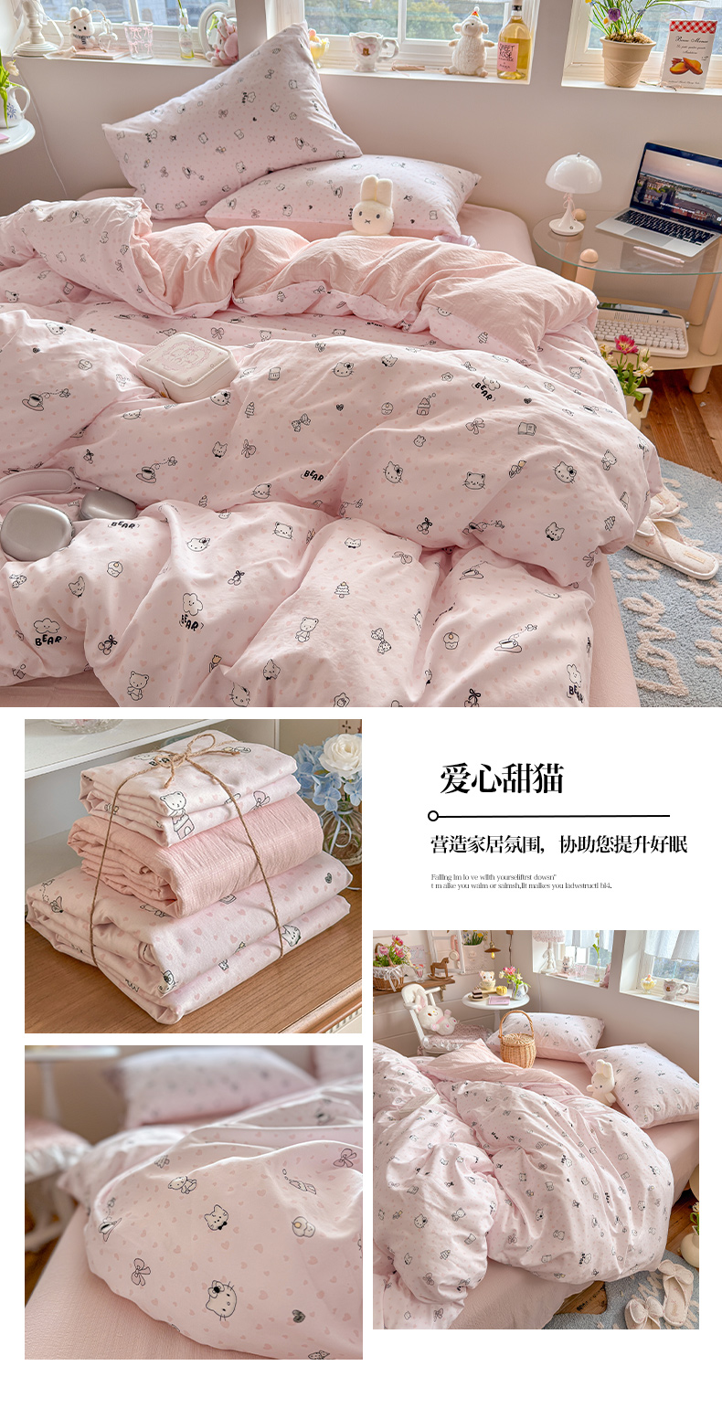 当前位置: 91家纺网 > 商品网购 > 床品套件 > 四件套 > 化纤普通四件套 > 罗亿家纺 2026新款A类古法水洗仿棉云感纱四件套 爱心甜猫