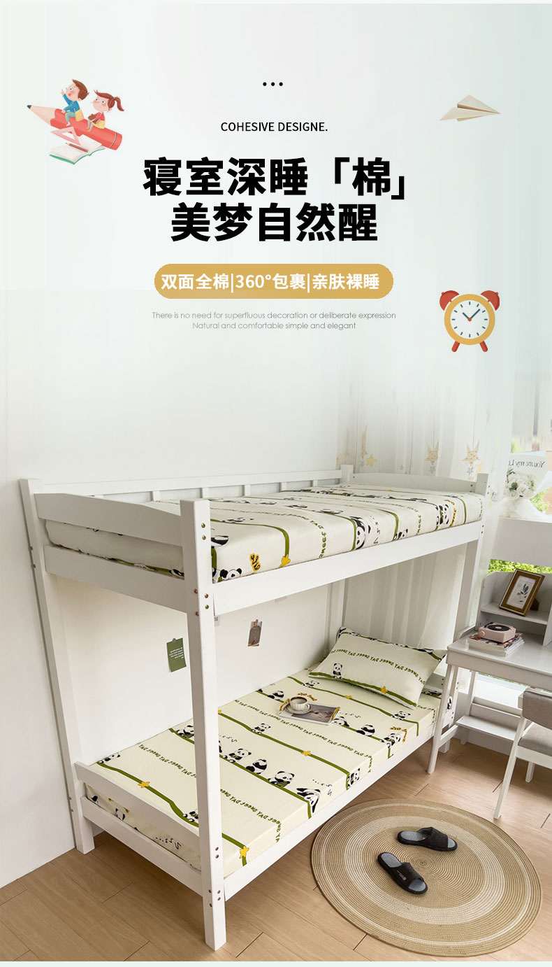 宅部落 2026新款全棉学生宿舍褥子套纯棉床垫套 熊猫派对