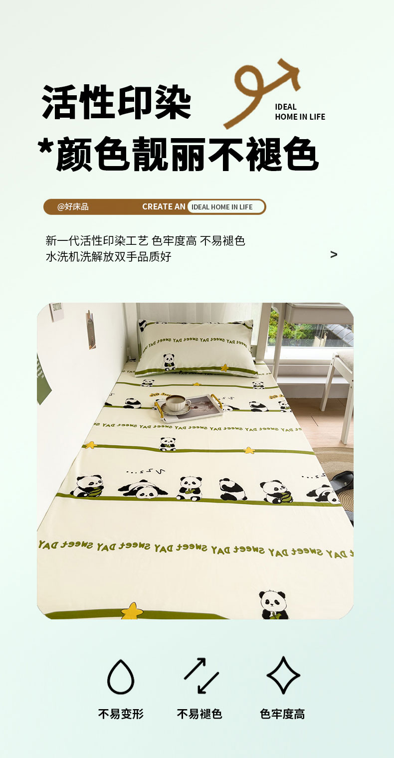 • 91家纺网 家纺一手货源 找家纺 宅部落 2026新款全棉学生宿舍褥子套纯棉床垫套 熊猫派对