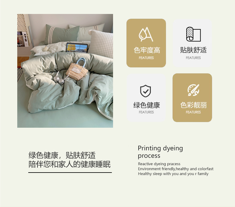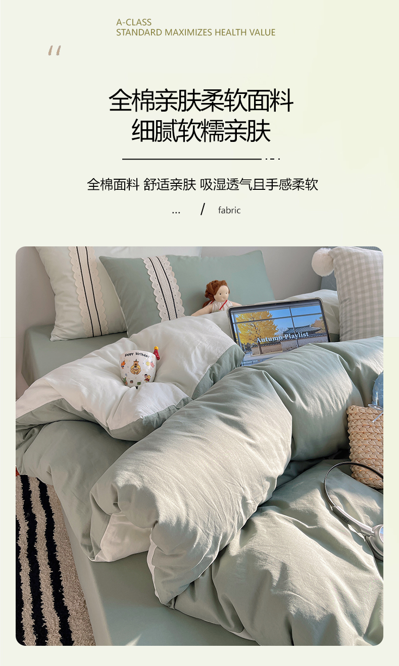 (总)三朵家纺 2026新款ins风全棉纯色双拼水洗棉四件套极简风系列,风青月白,焦糖曲奇,蓝韵雾纱,流光奶绿,抹茶奶黄,浅蓝芝士,香芋奶昔,烟墨灰,云纱可可