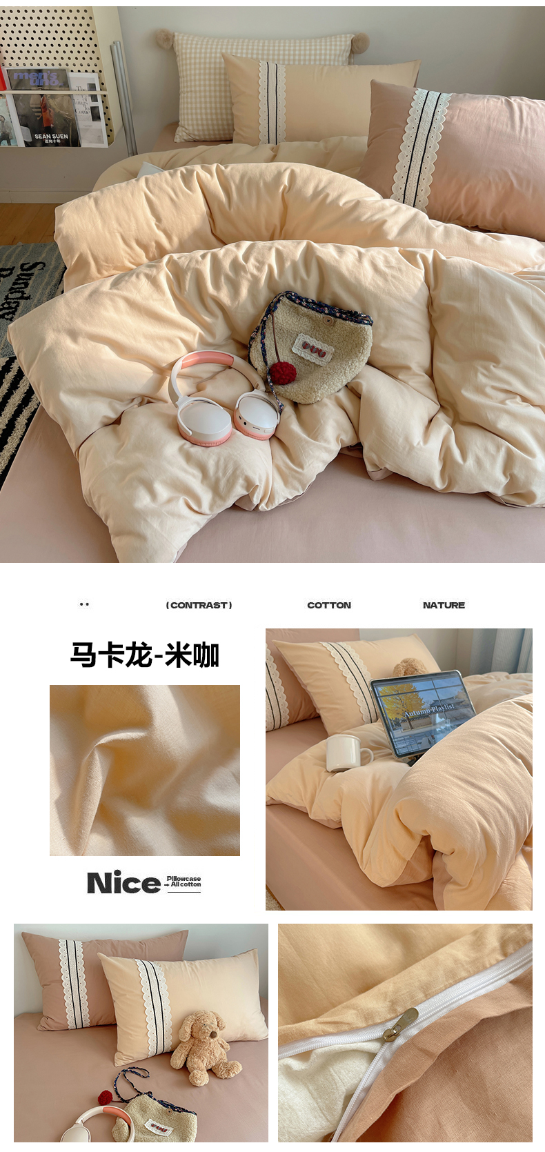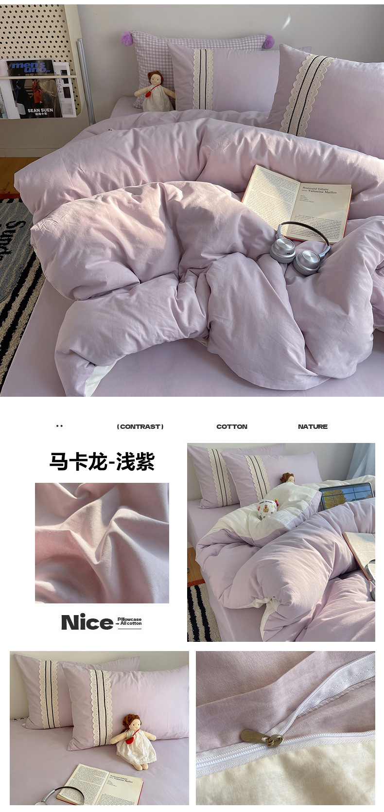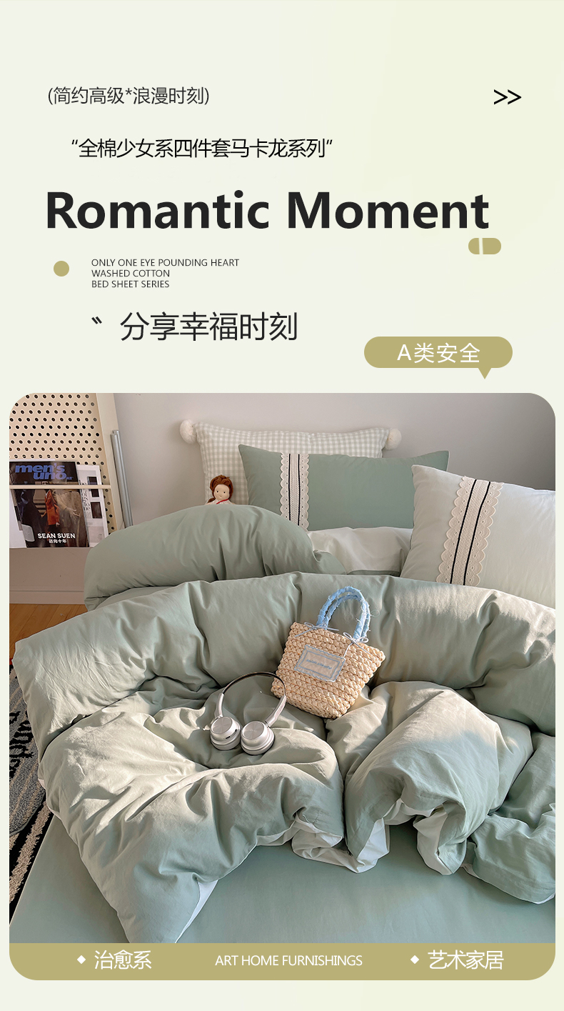 (总)三朵家纺 2026新款ins风全棉纯棉水洗棉少女系四件套-玛卡龙系列