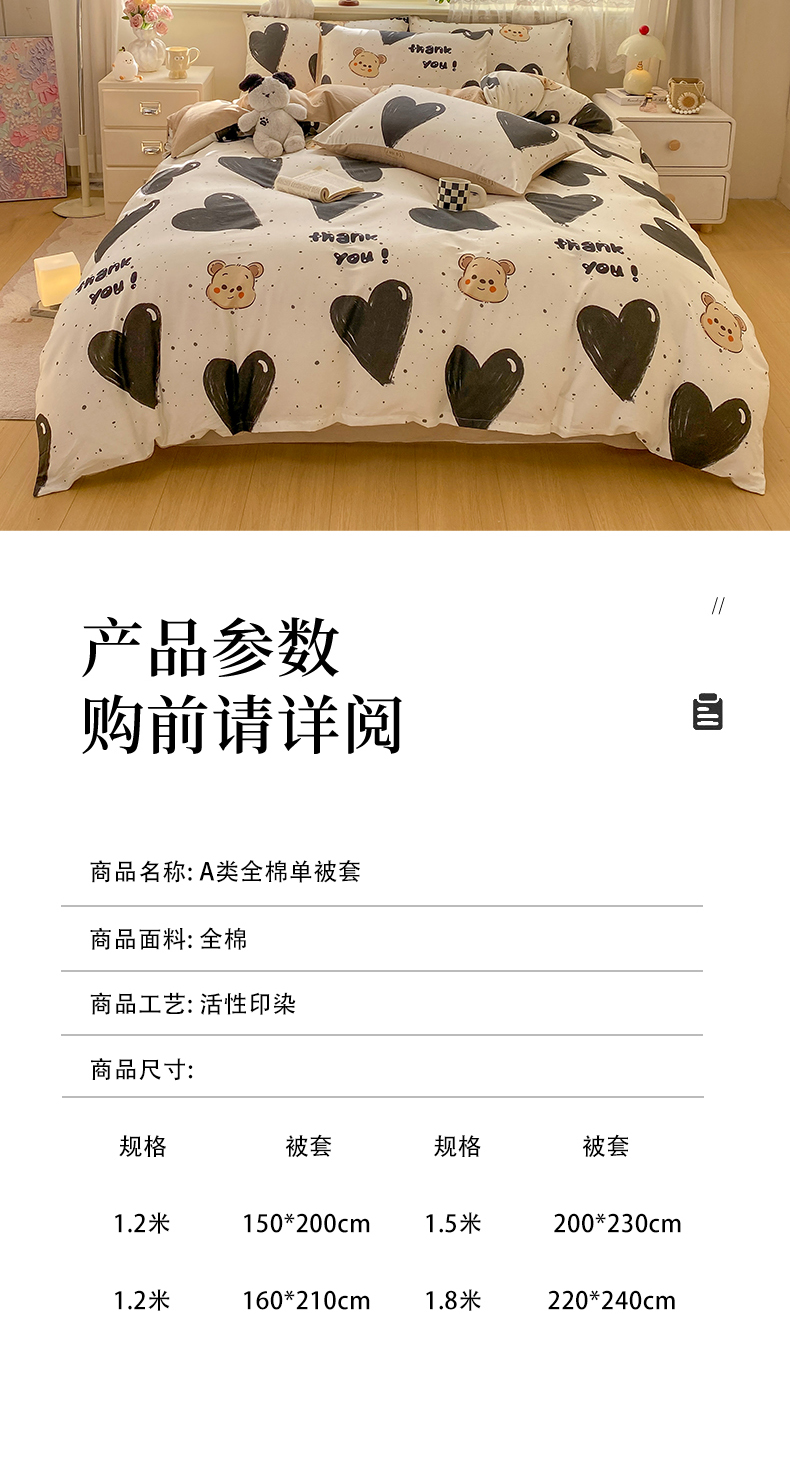 红日子纺织品 2026新款12868全棉纯棉印花被套单被套被套单件(提供检测报告) 萌心熊宝