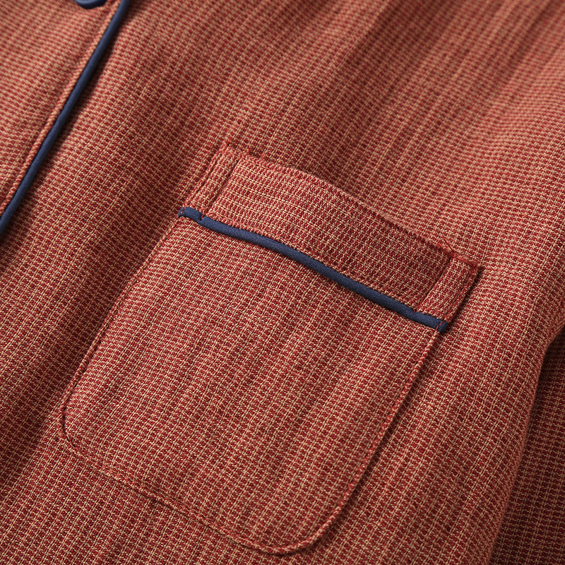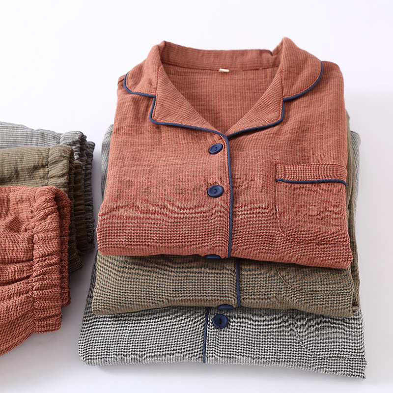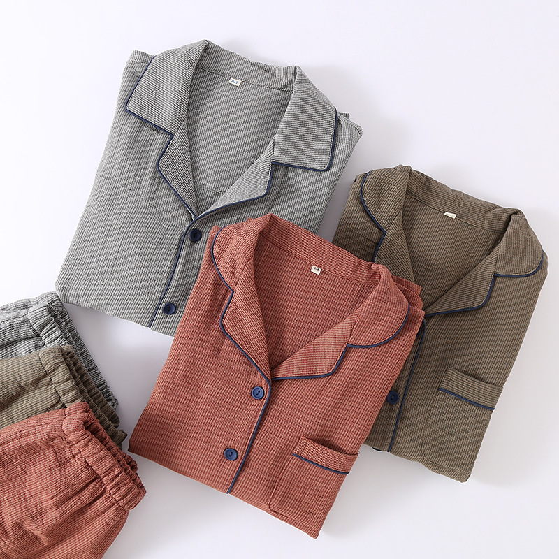 (总)洛兰沙家居馆 2025新款日系无印风色织纯棉双层纱布家居服男士春秋夏季全棉长袖睡衣批发,无印风男