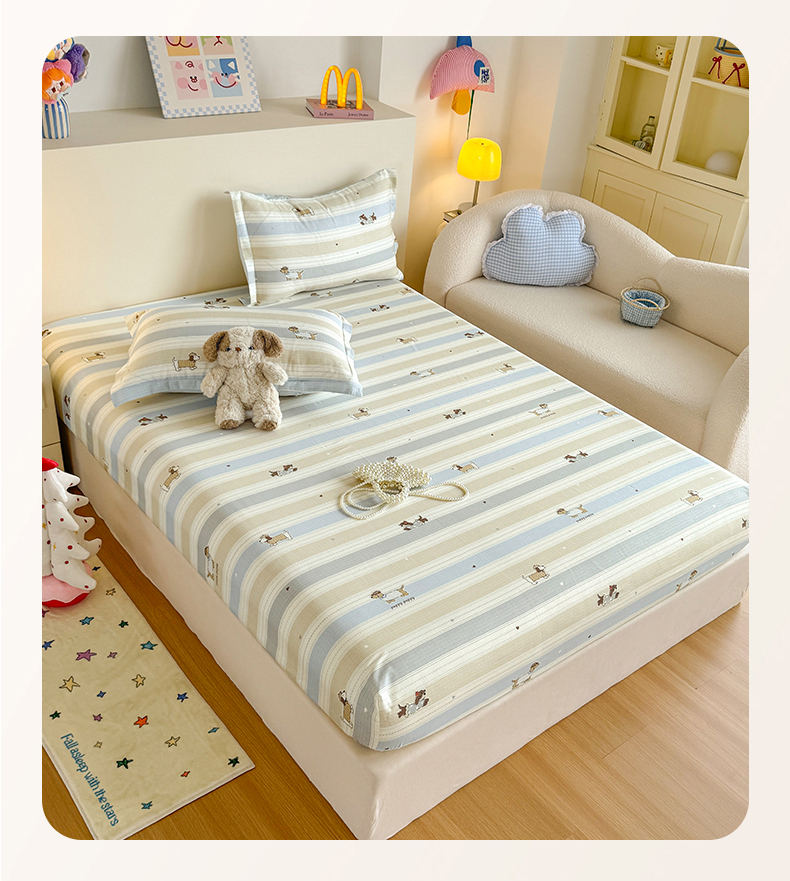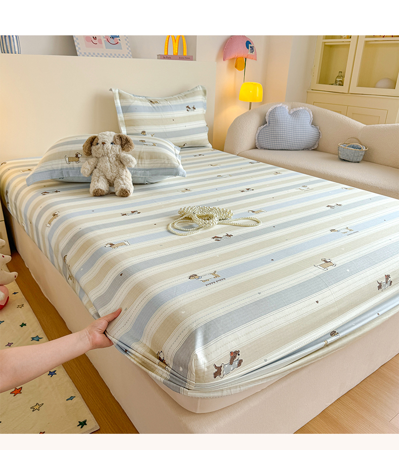 尚帛 2026新款全棉品质喷气印花爆款四件套 多规格套件 单品系列-单床笠 奔跑小狗