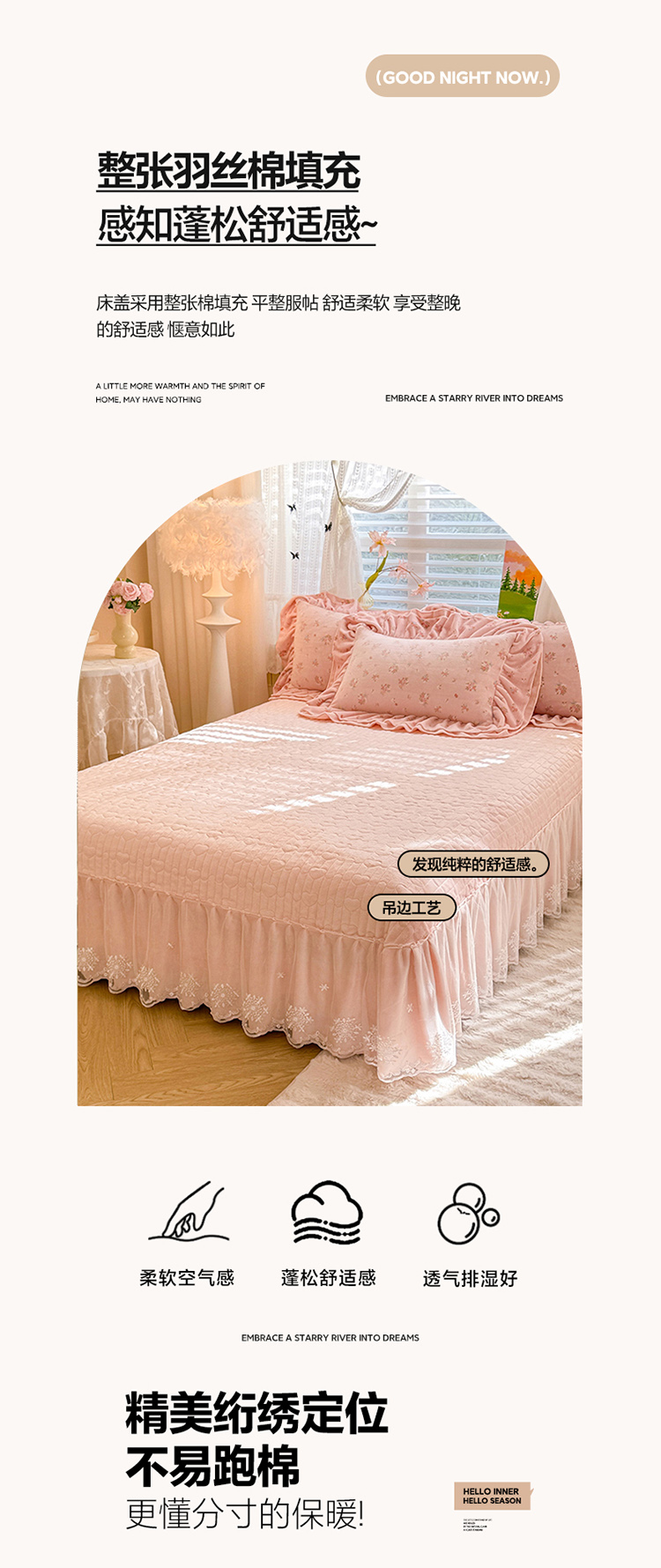 (总)苏米娜2026春夏新品韩版公主风超柔水洗棉床盖四件套刺绣针织棉双层纱纯棉棉麻全棉公主风床盖款四件套,芬迪-香雪粉 ,芬迪-可可灰, 芬迪-松露咖 ,芬迪-星云紫