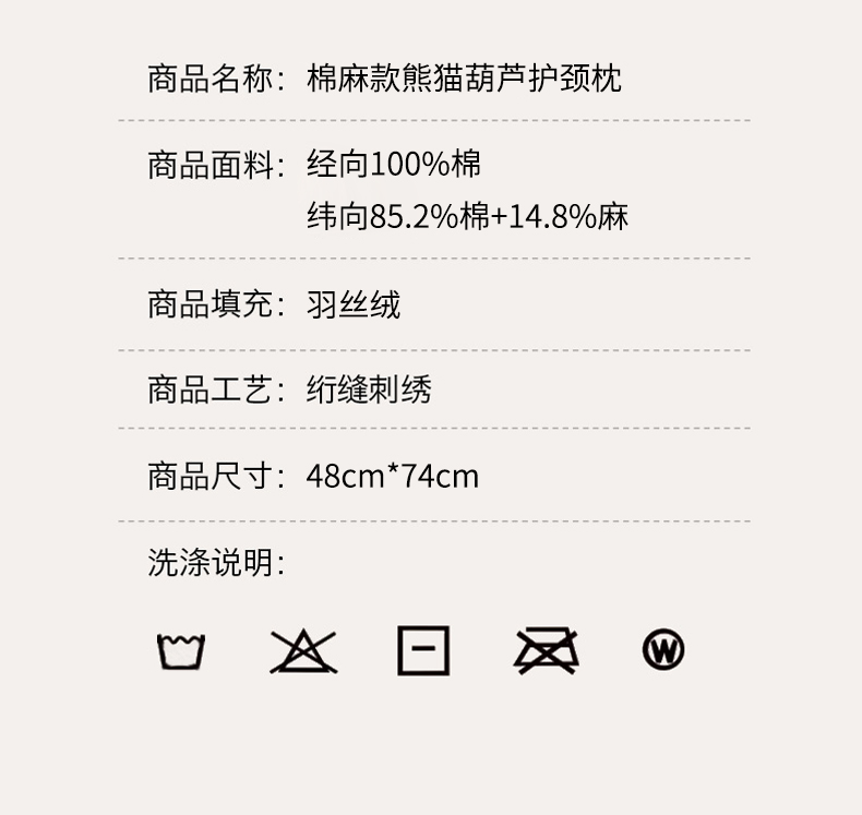 当前位置: 91家纺网 > 商品网购 > 枕头/枕芯/保健枕/颈椎枕 > 枕头枕芯 > (总)仁宇枕业 2025新款新品棉麻款熊猫葫芦护颈枕头枕芯