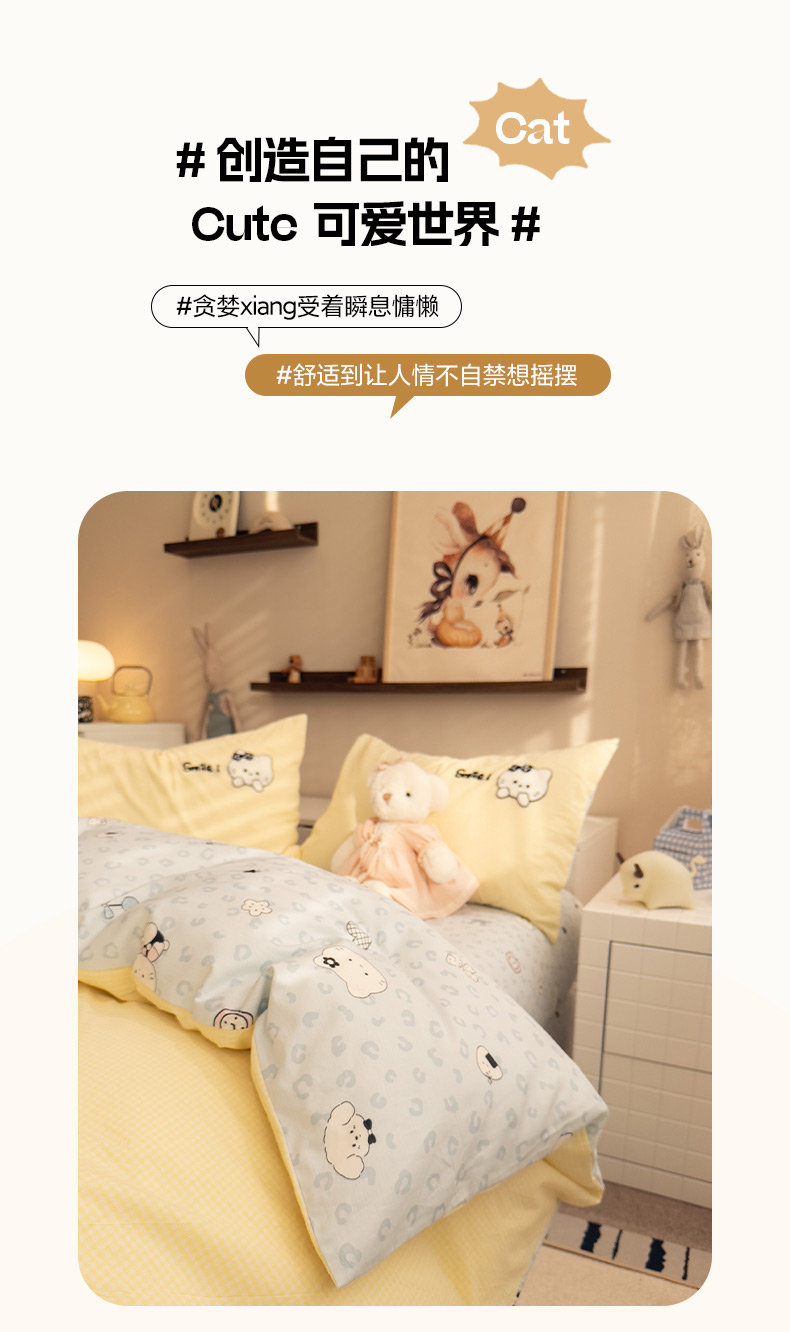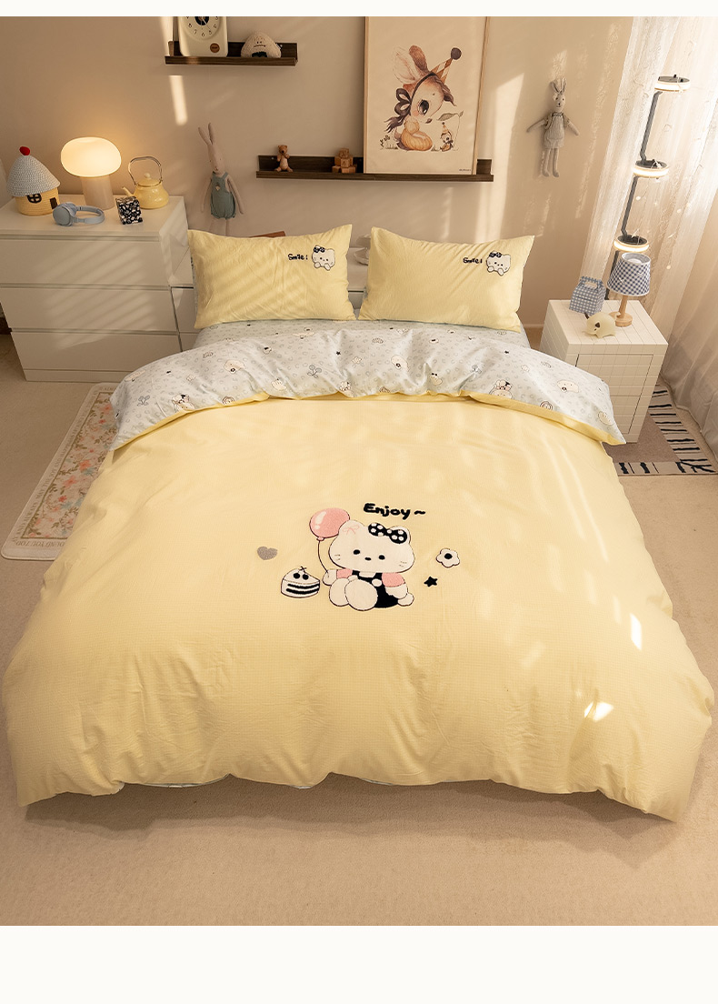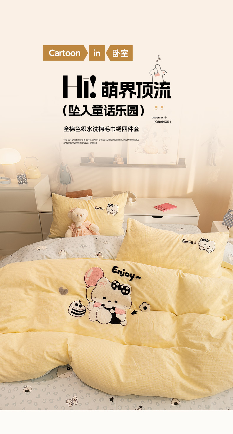 (总)雅居纺家纺 2026新款全棉双层纱毛巾绣四件套,蛋糕猫咪,红苹果小狗,萌宠甜品,早安兔兔