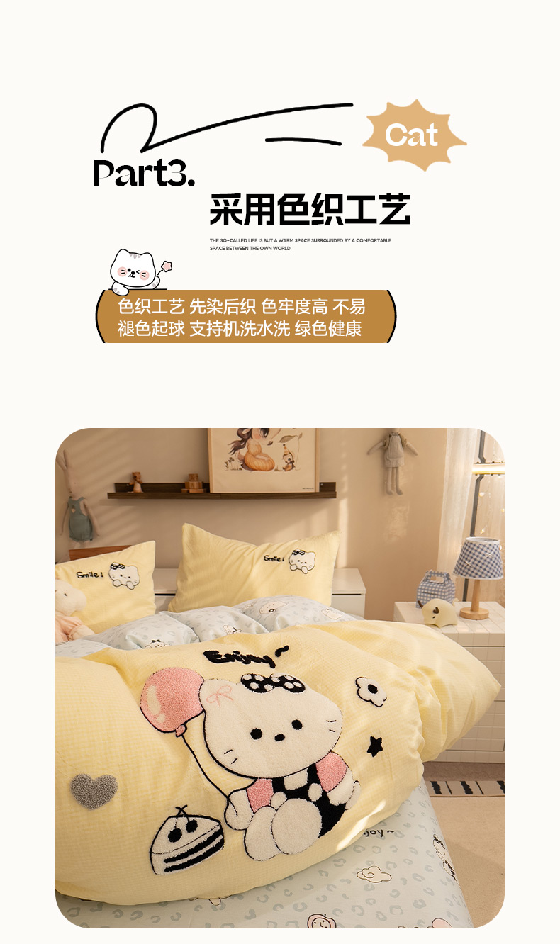 (总)雅居纺家纺 2026新款全棉色织水洗棉毛巾绣猫咪四件套,绿格猫咪,木马猫咪,派对小猫,气球猫咪,星星猫咪,幸福猫咪