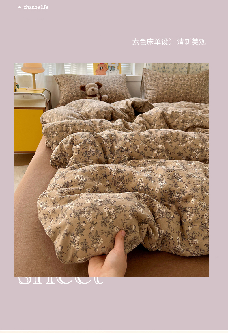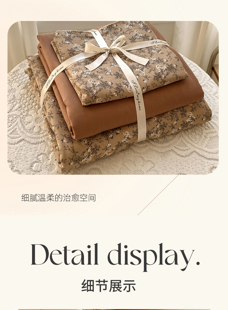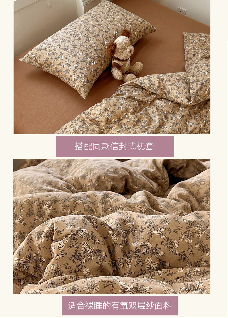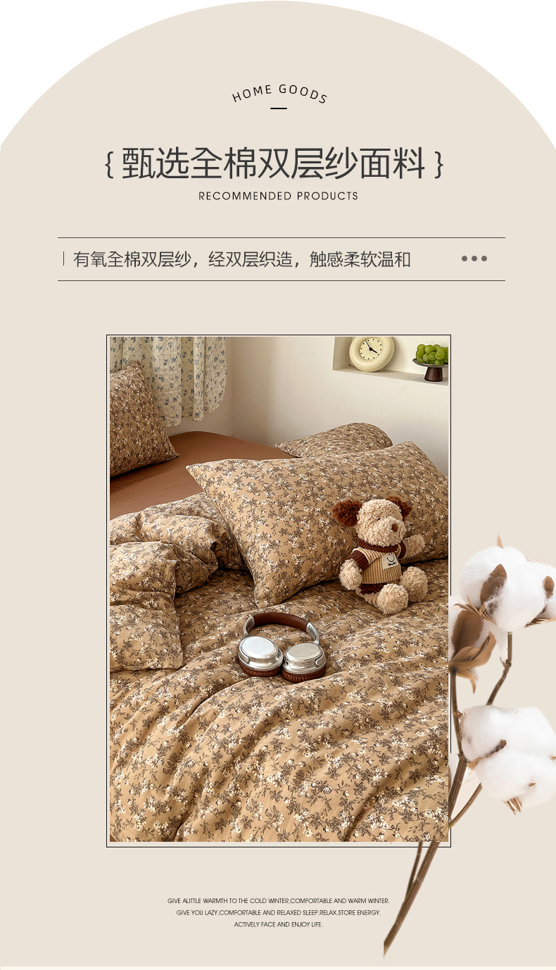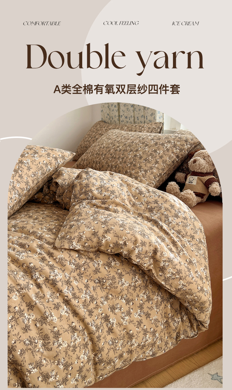 当前位置: 91家纺网 > 商品网购 > 床品套件 > 四件套 > 双层纱四件套 > 麦伦家居 2026春夏新品全棉有氧双层纱印花系列简约款四件套 美式