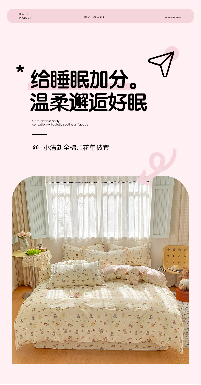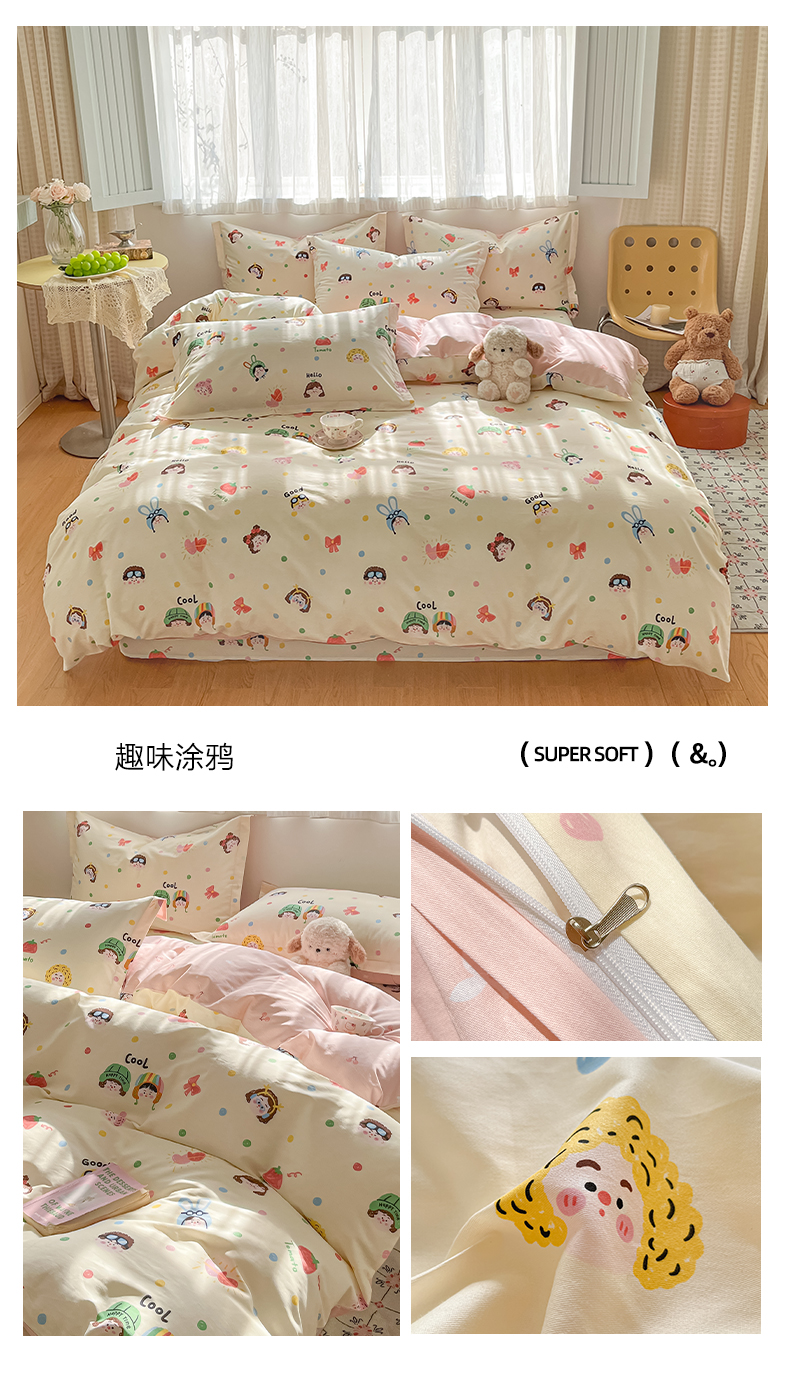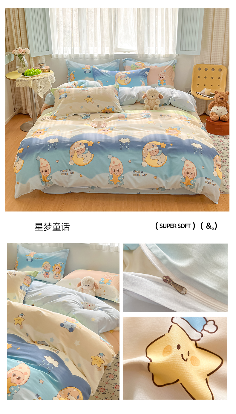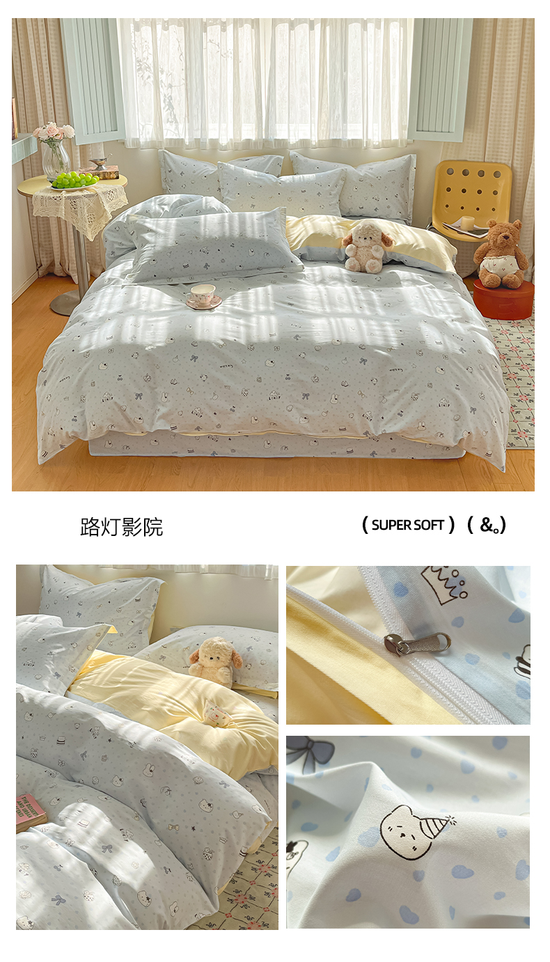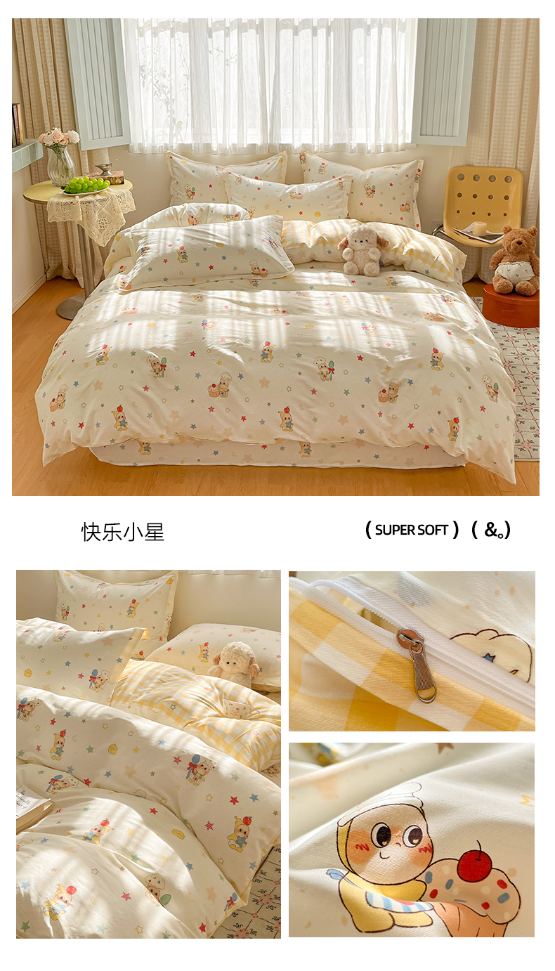 商品名称:花梦欣 2026新款全棉印花系列简约卡通款单被套 韩系小萌物
