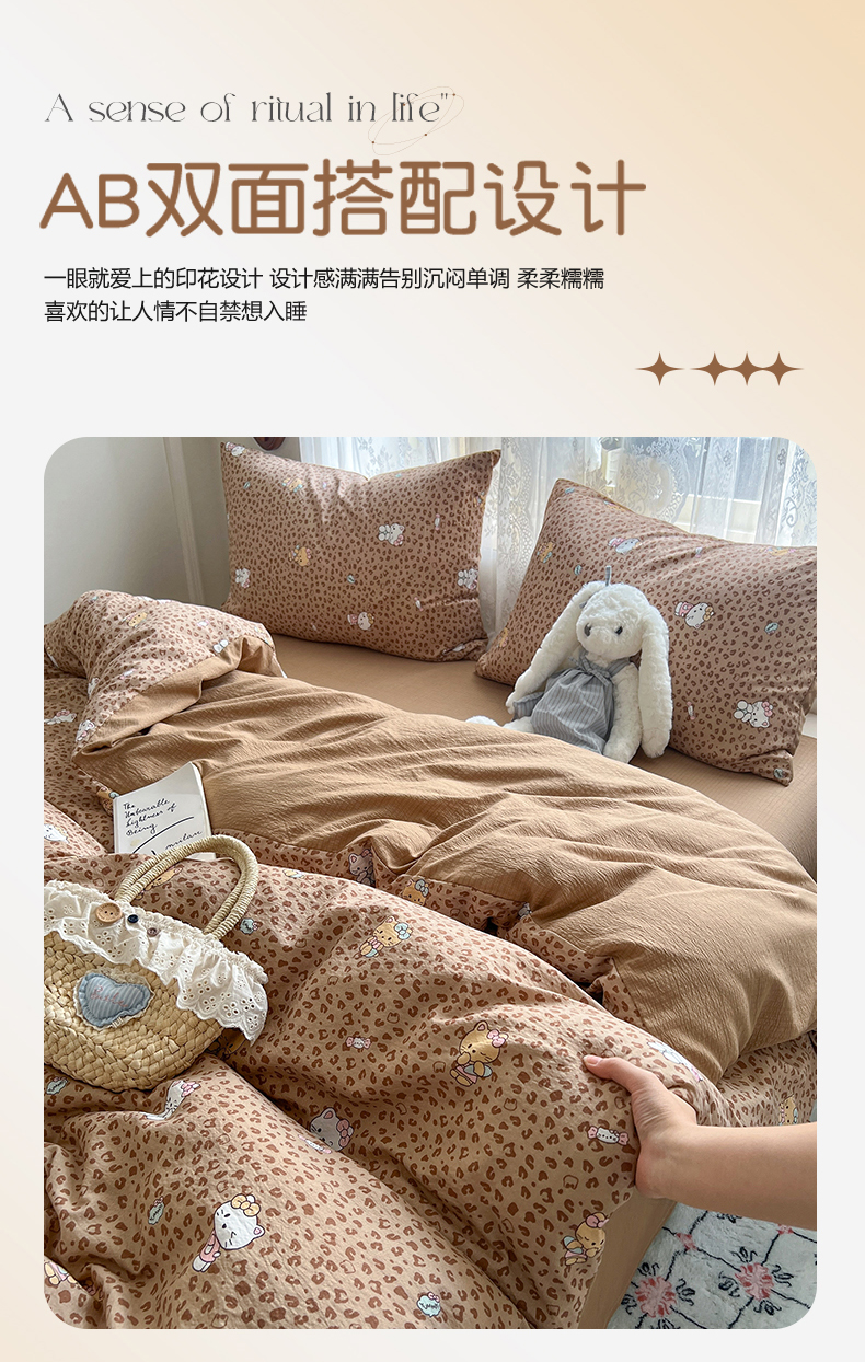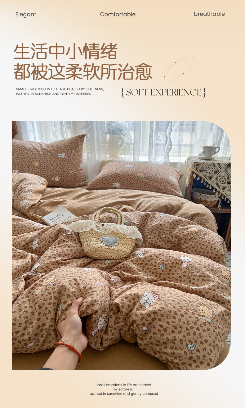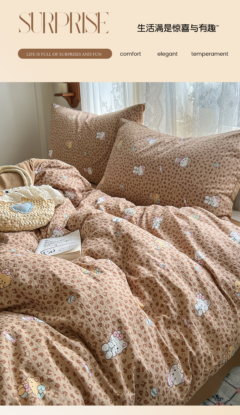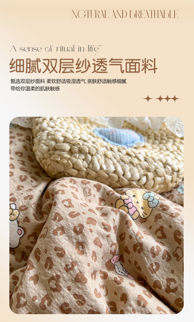 当前位置: 91家纺网 > 商品网购 > 床品套件 > 四件套 > 其它四件套 > 妖妖家纺 2026新款敲可爱的奶呼呼云感双层纱简约四件套系列 豹豹猫猫-棕