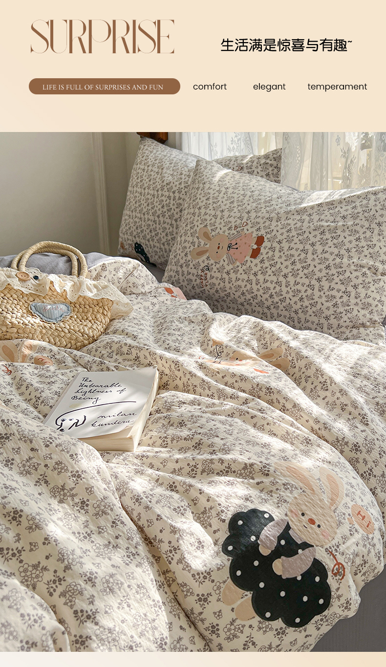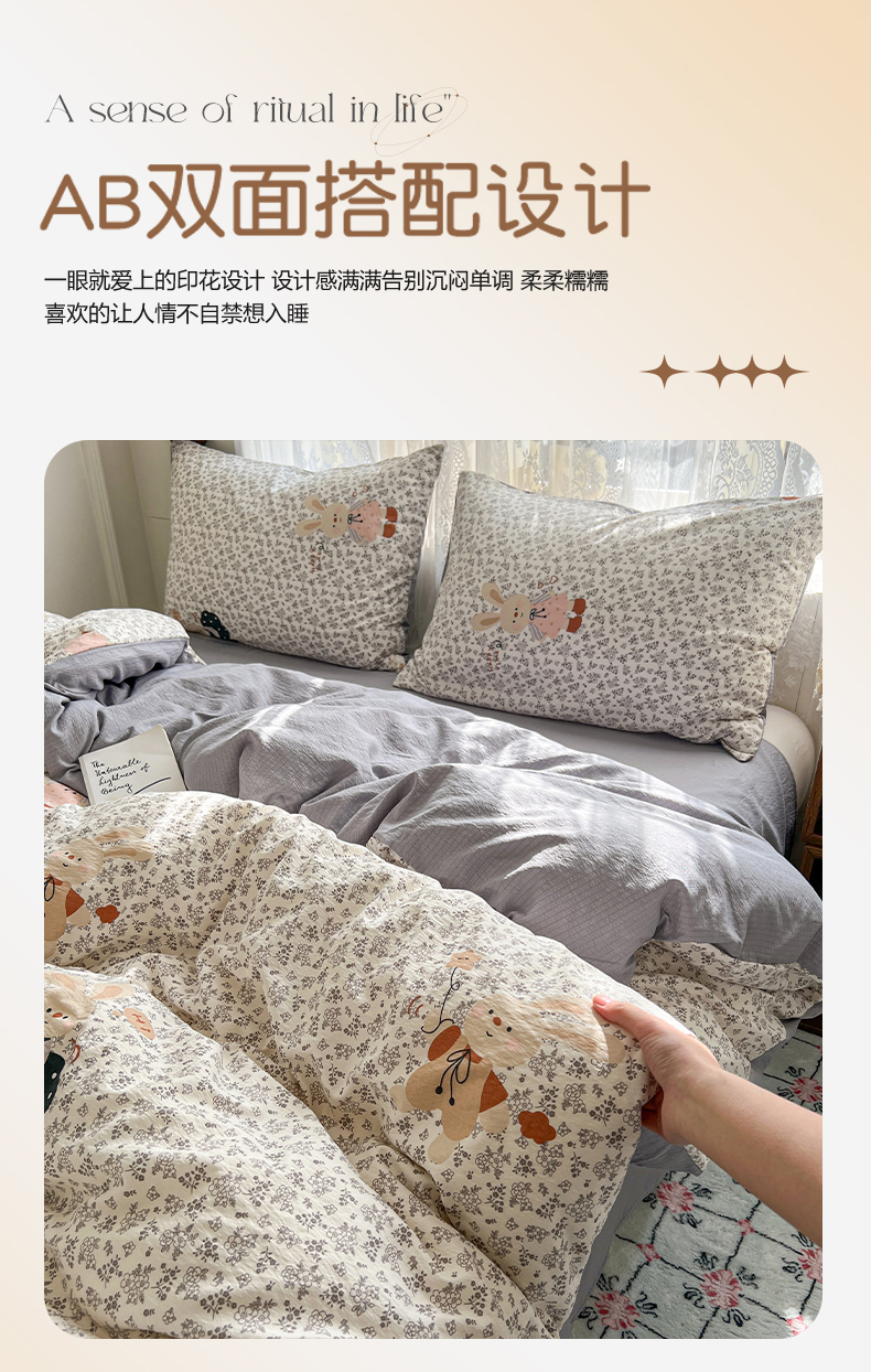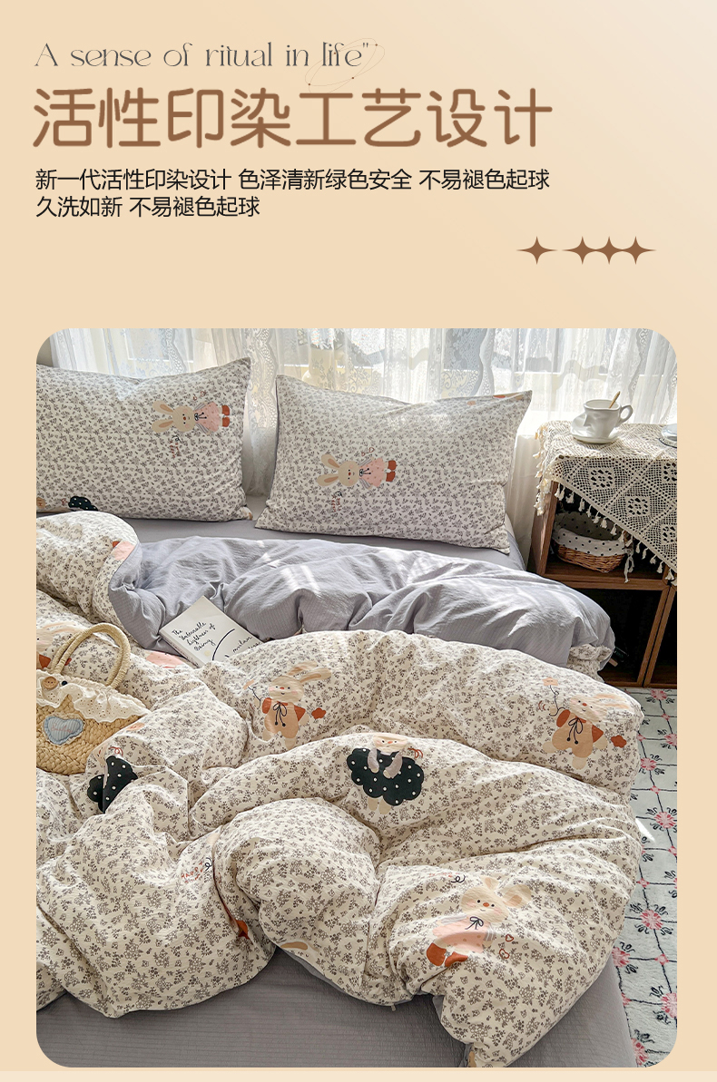 当前位置: 91家纺网 > 商品网购 > 床品套件 > 四件套 > 其它四件套 > 妖妖家纺 2026新款敲可爱的奶呼呼云感双层纱简约四件套系列 跳跃萌兔