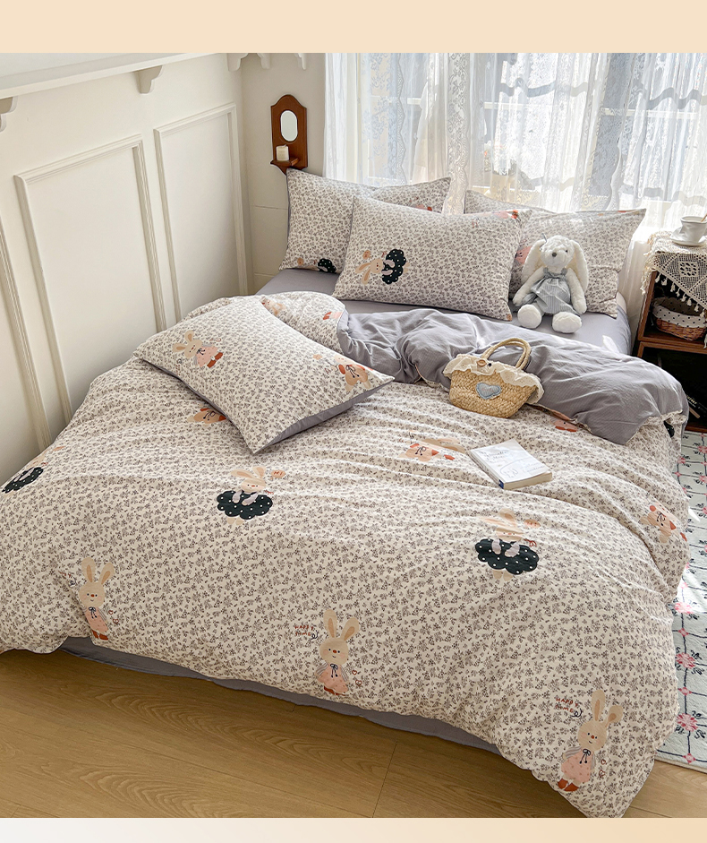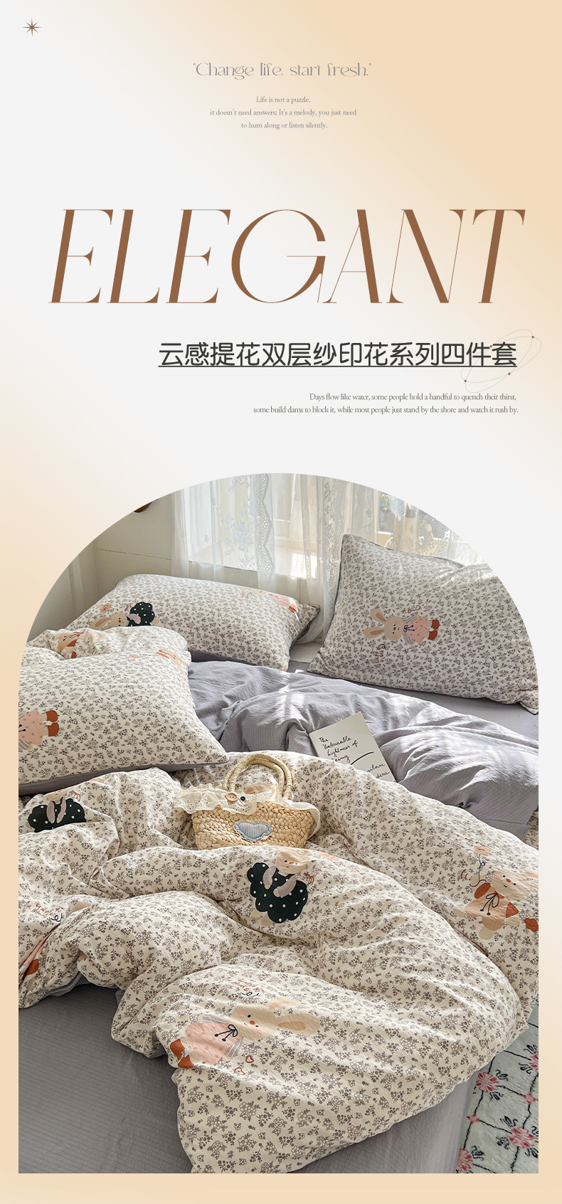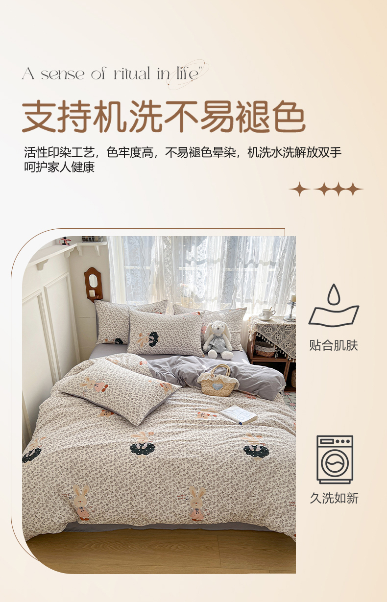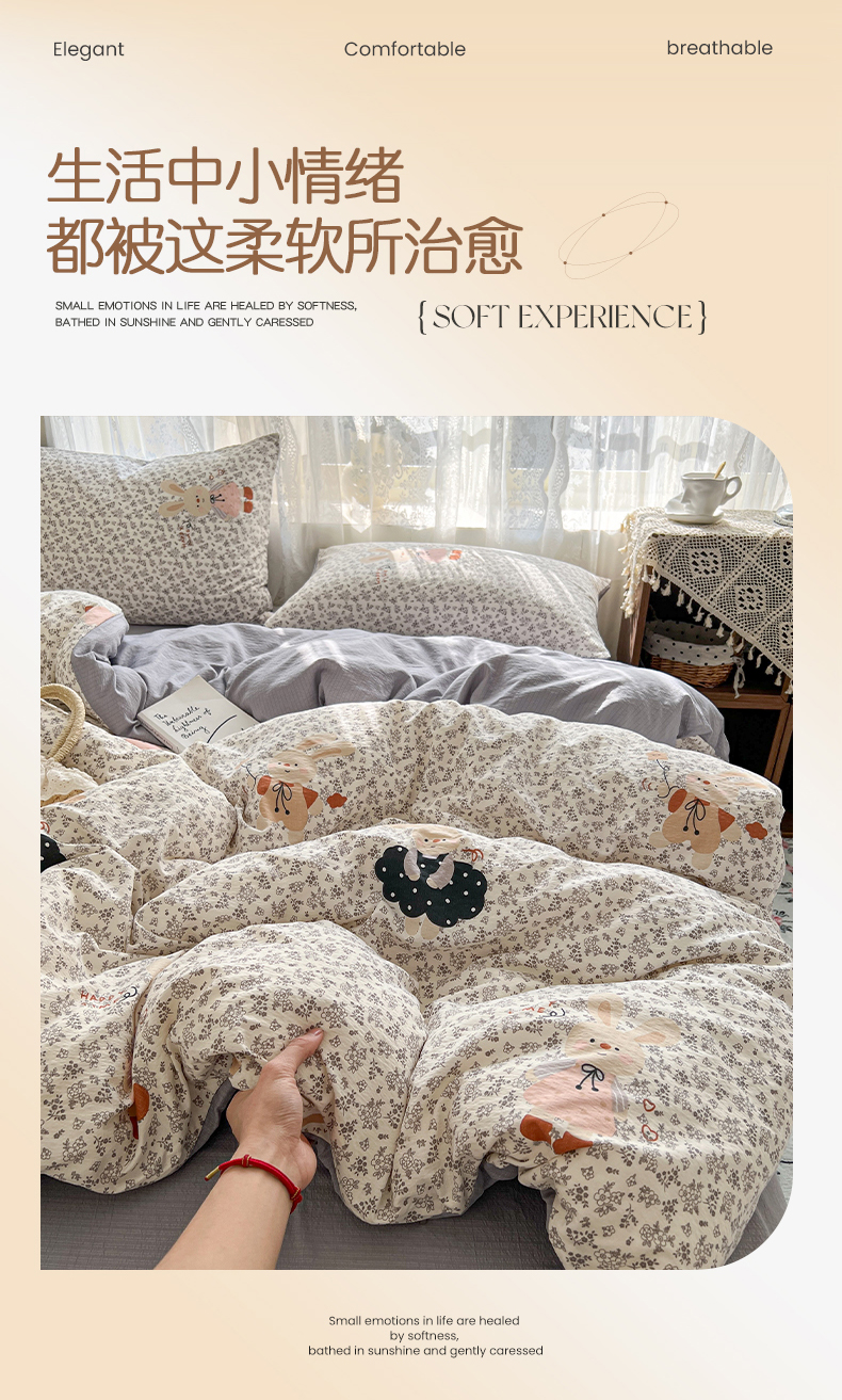 当前位置: 91家纺网 > 商品网购 > 床品套件 > 四件套 > 其它四件套 > 妖妖家纺 2026新款敲可爱的奶呼呼云感双层纱简约四件套系列 跳跃萌兔