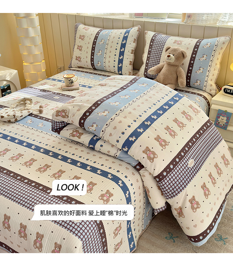 商品名称:云锦家居 2026新款双面纯棉小清新印花床盖款四件套 床盖款-口袋故事