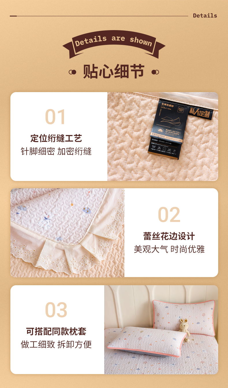 • 91家纺网 家纺一手货源 找家纺 (总)拾小柒 2026年新款全棉双层纱床盖花边法式中古奶油风防滑床盖三件套,豆豆好朋友,咕噜派米,鲤安,萌趣森林粉,萌趣森林蓝