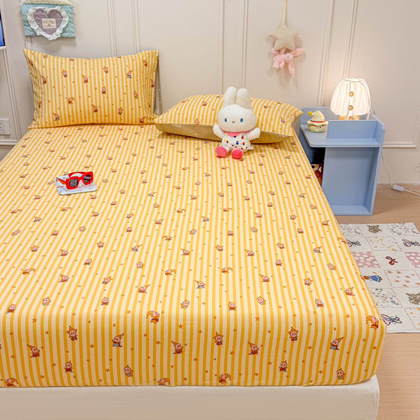 (总)呗旺鹿 2026新款全棉纯棉13070萌星单品床笠 床笠单件,萌星