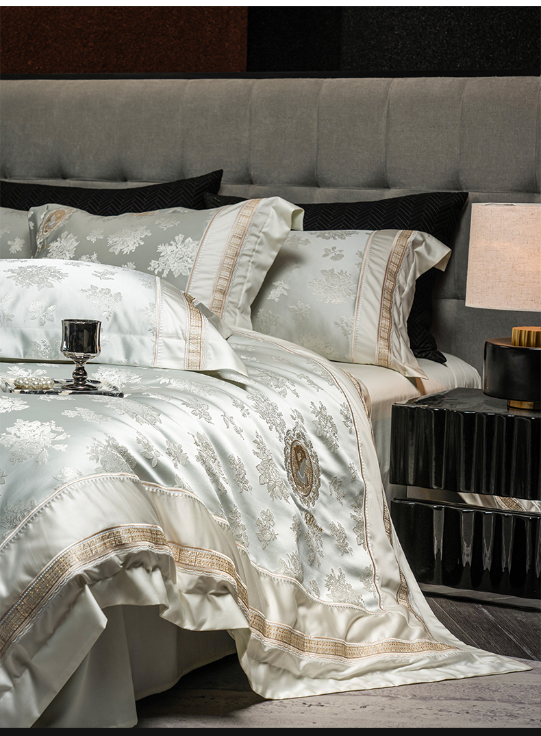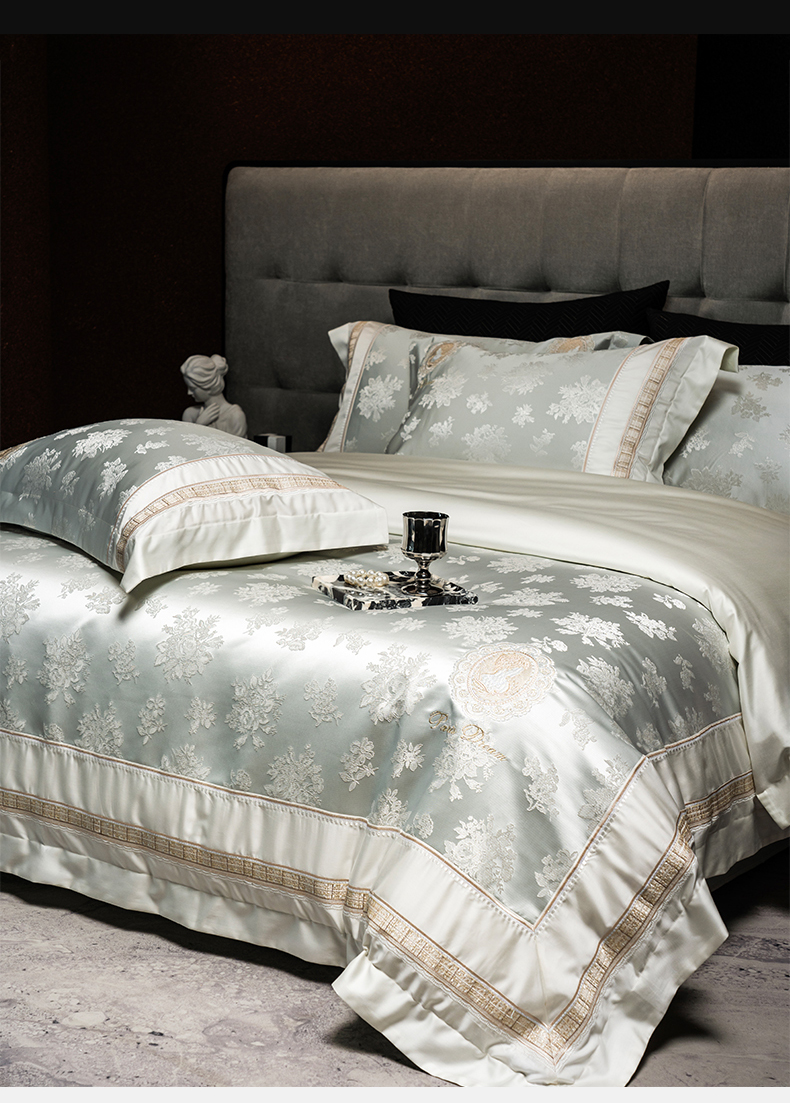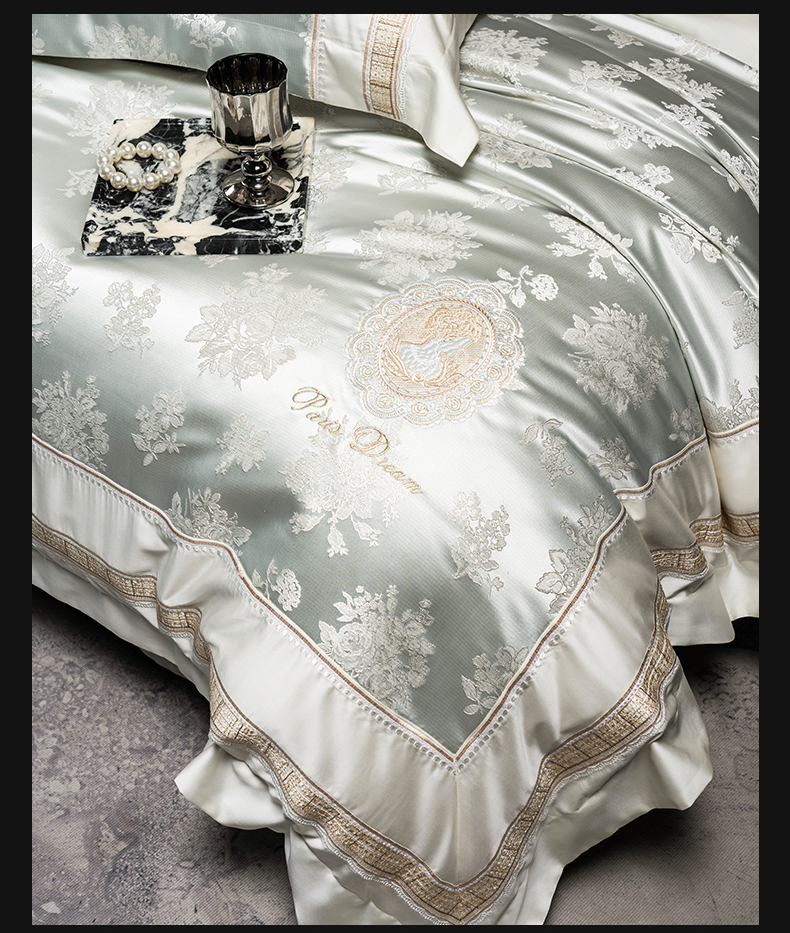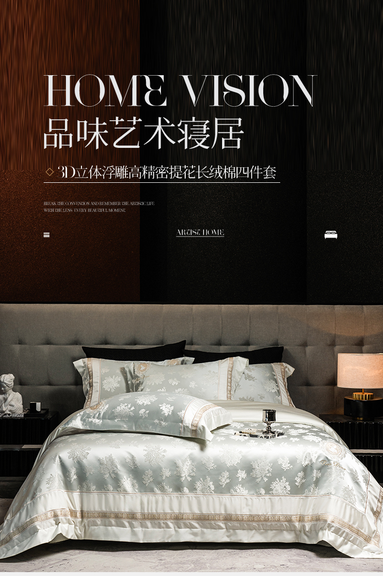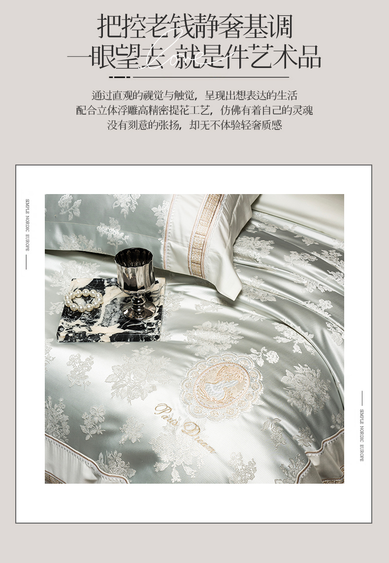商品名称:鼎飞家纺 2026新款3D立体浮雕高精密长绒棉四件套--索菲尔系列 索菲尔-芙绿