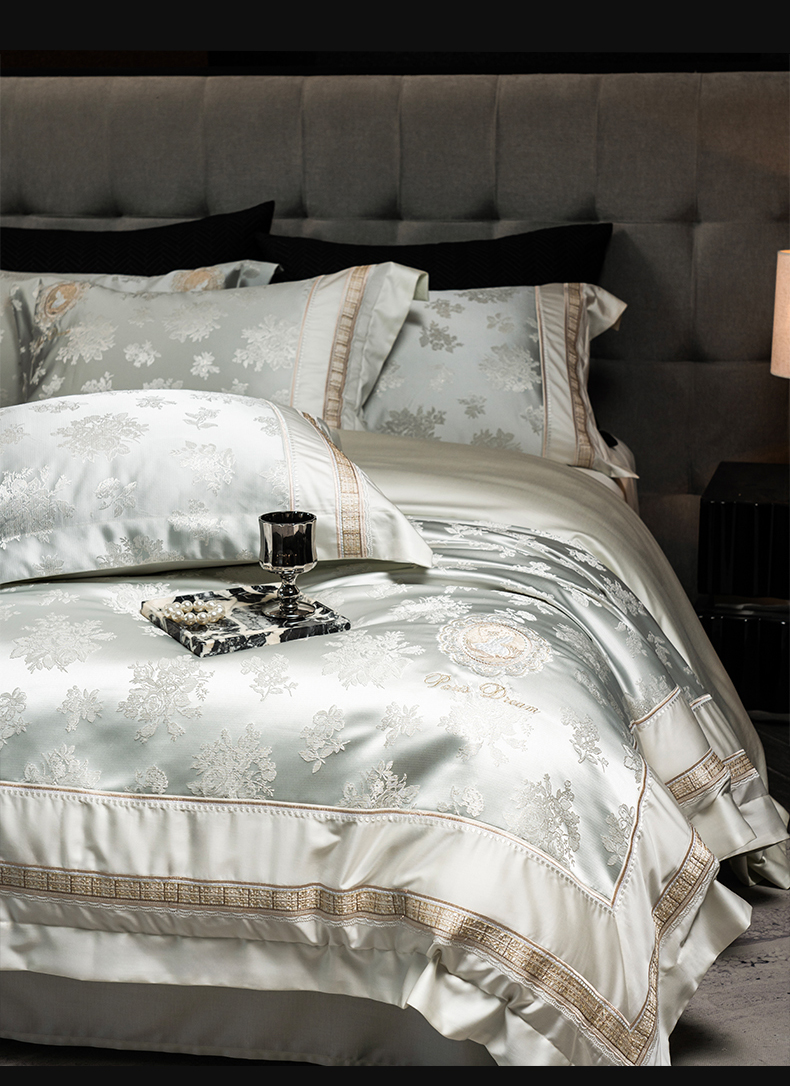 鼎飞家纺 2026新款3D立体浮雕高精密长绒棉四件套--索菲尔系列 索菲尔-芙绿