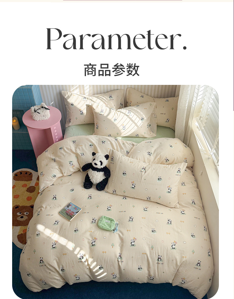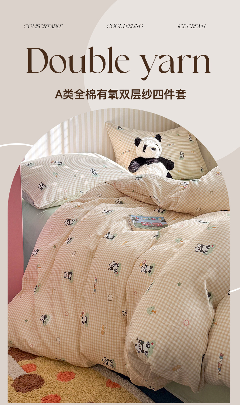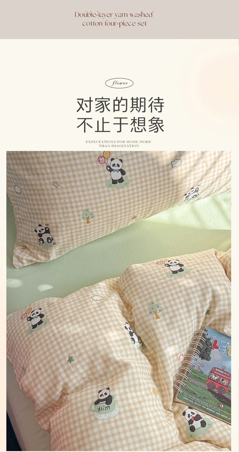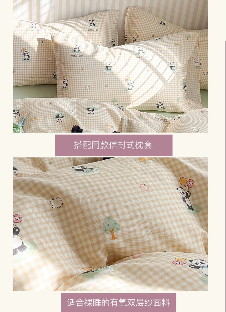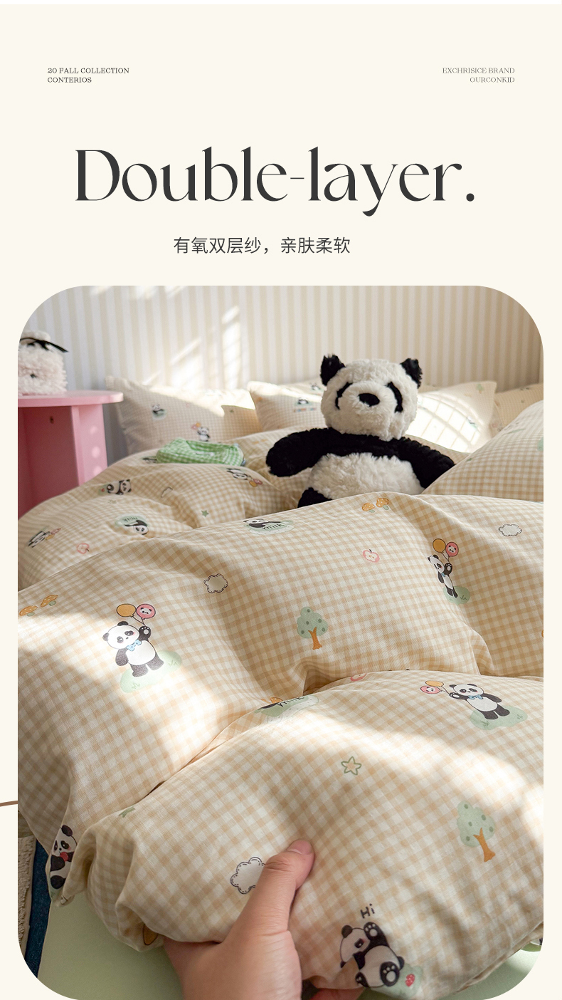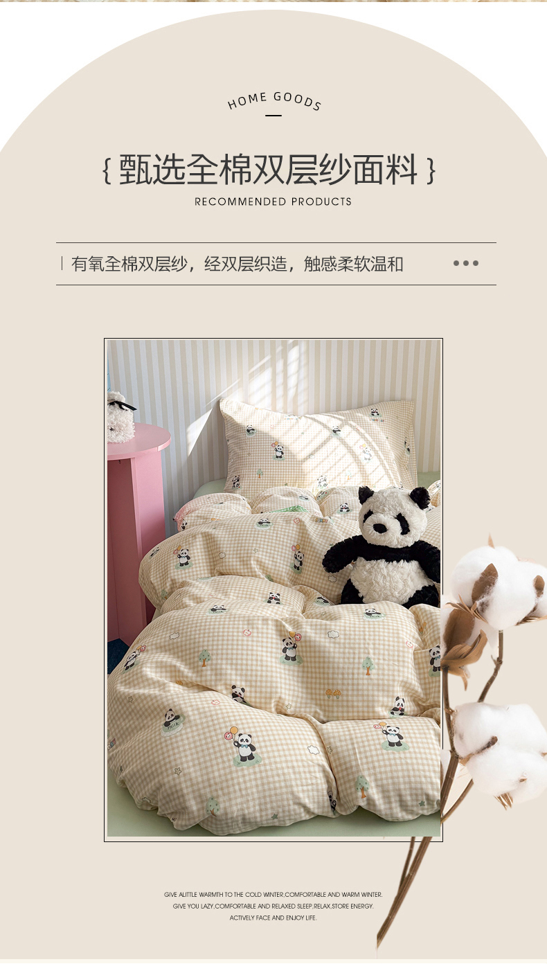 当前位置: 91家纺网 > 商品网购 > 床品套件 > 四件套 > 全棉普通四件套 > 麦伦家居 2026年春夏新款全棉纯棉有氧双层纱印花四件套-第二波 俏皮熊猫