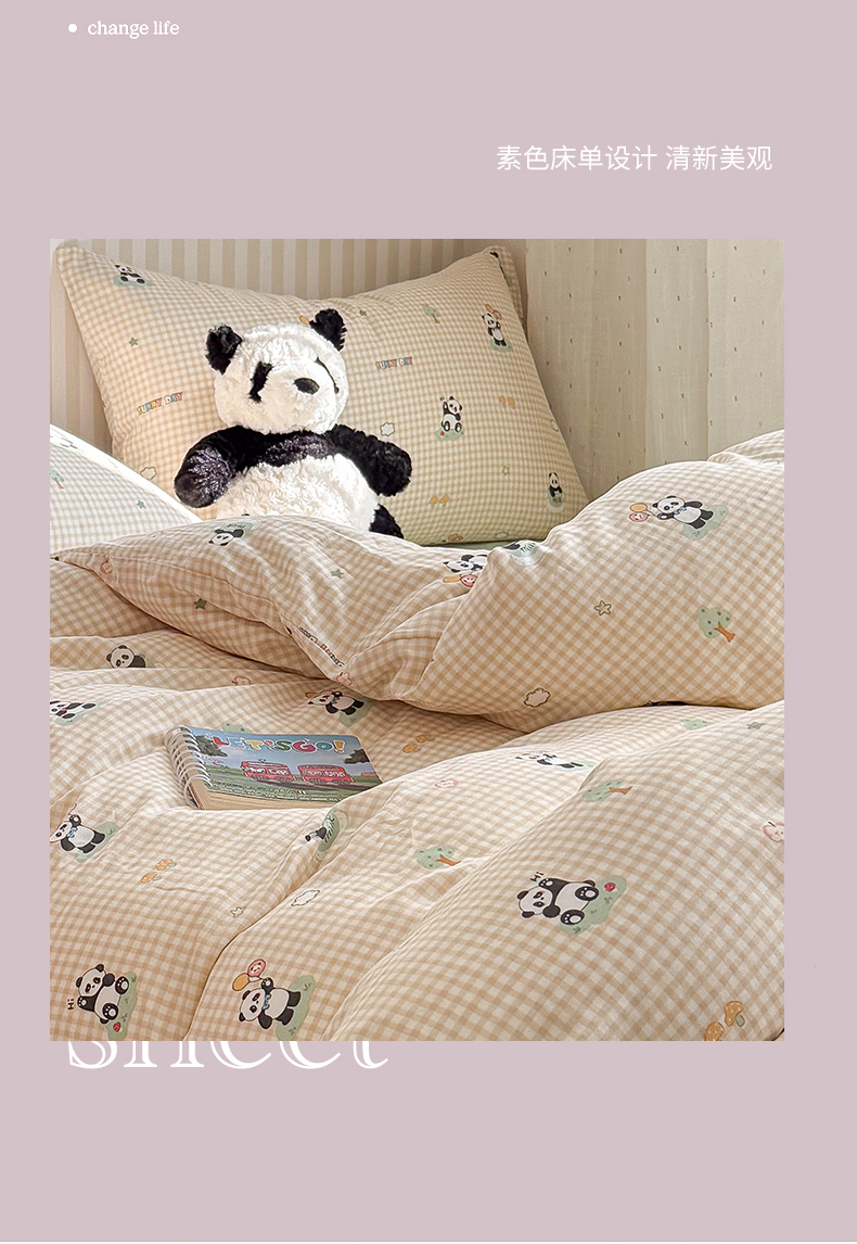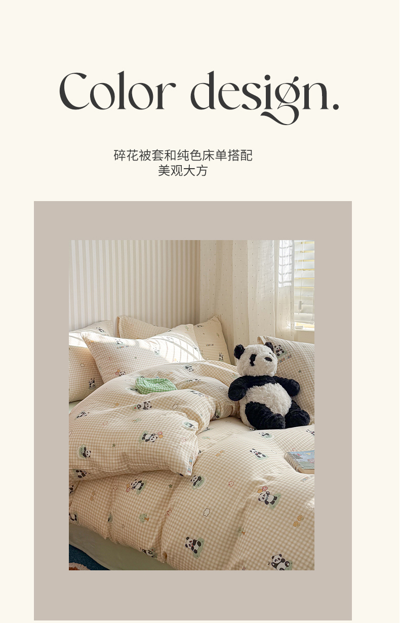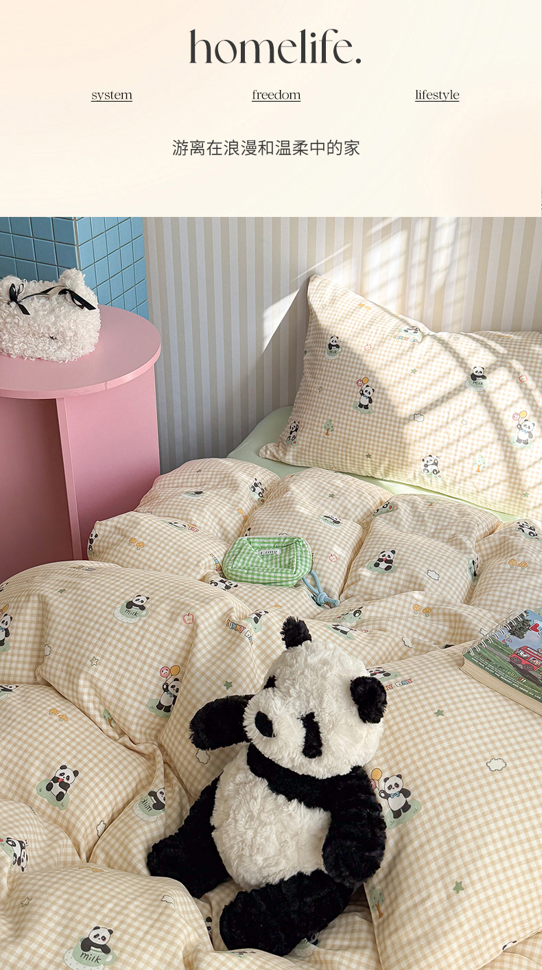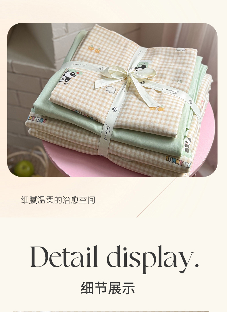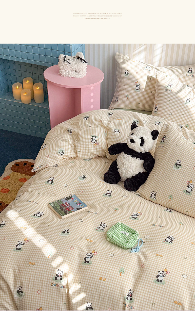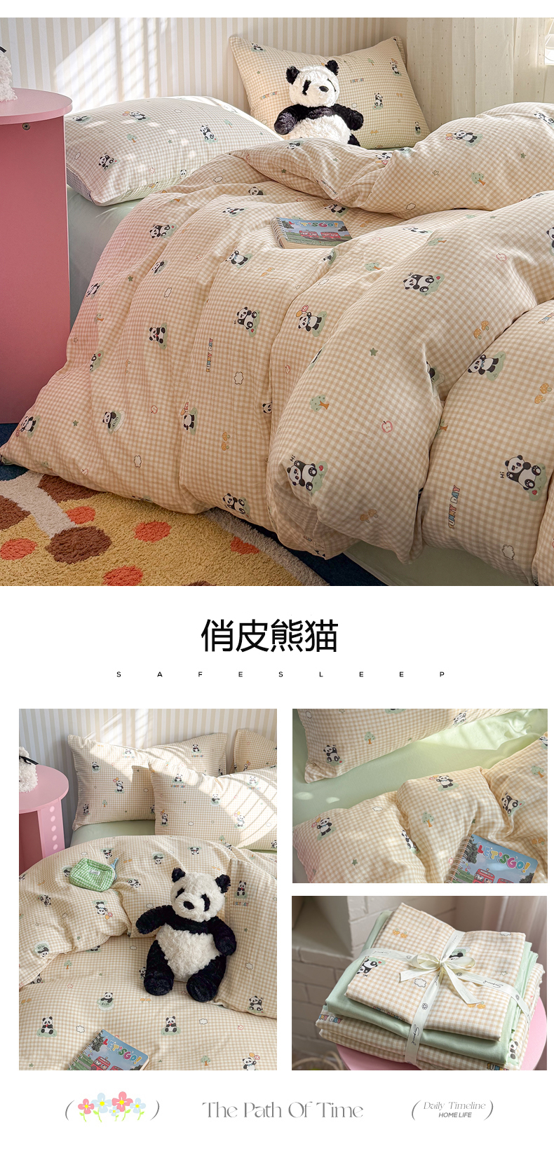 当前位置: 91家纺网 > 商品网购 > 床品套件 > 四件套 > 全棉普通四件套 > 麦伦家居 2026年春夏新款全棉纯棉有氧双层纱印花四件套-第二波 俏皮熊猫