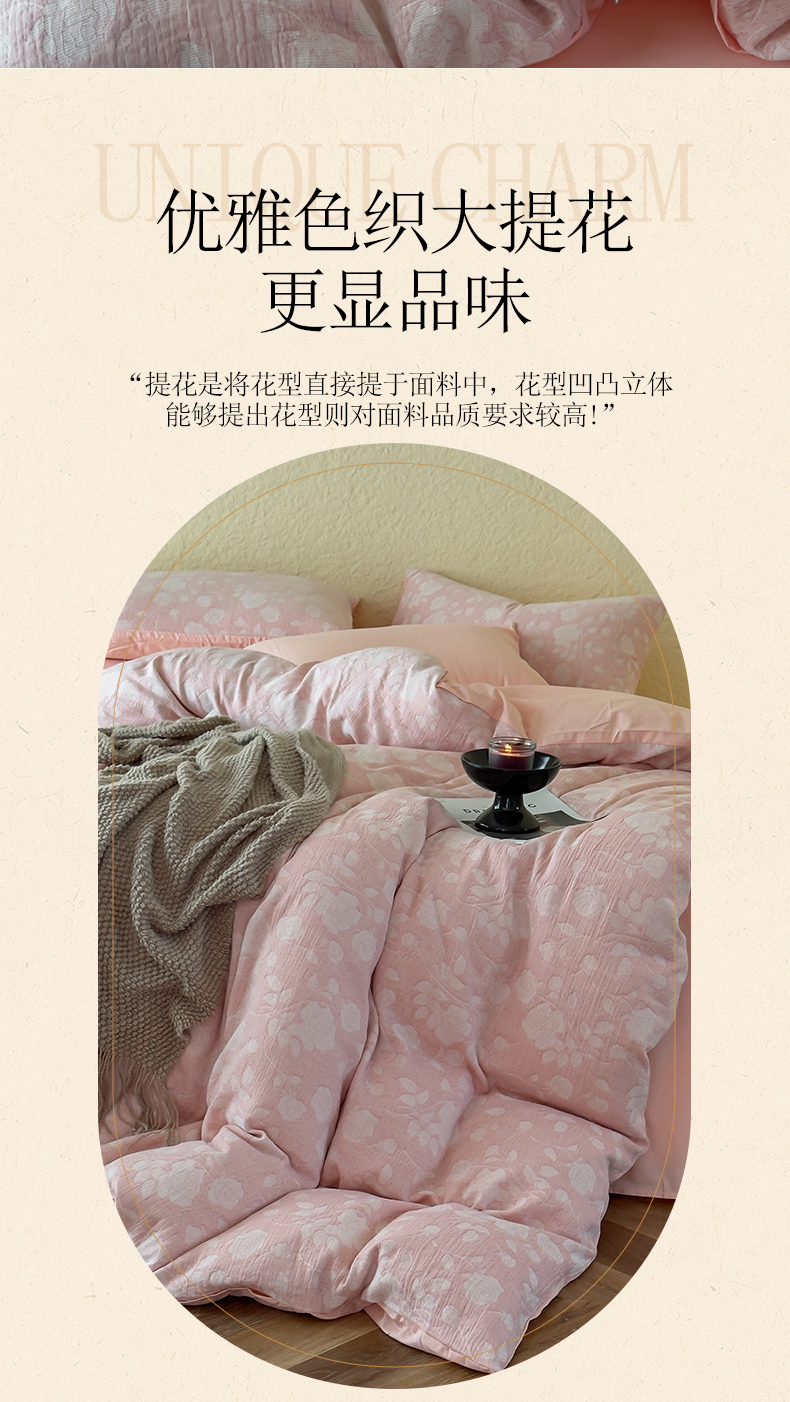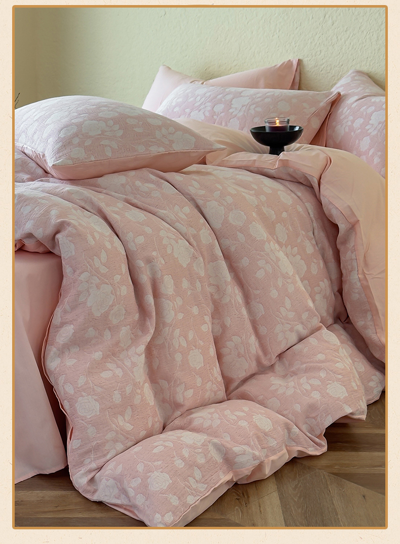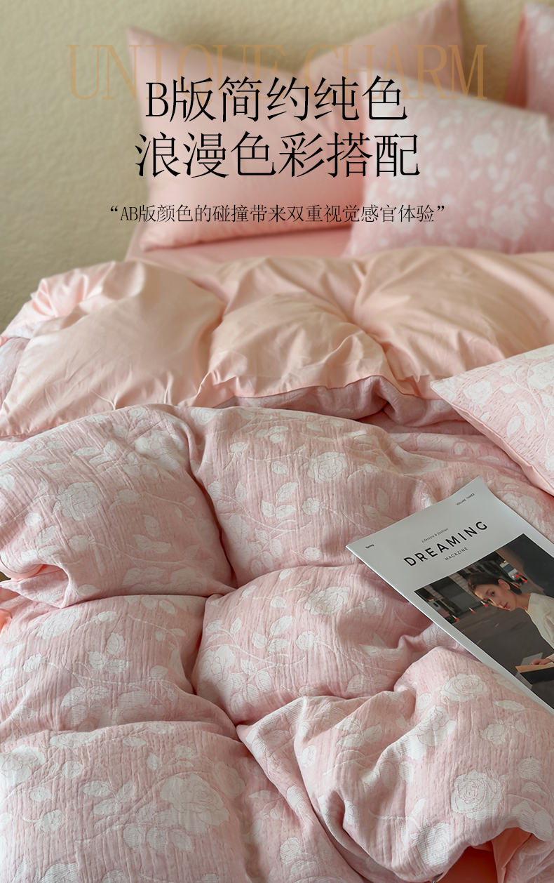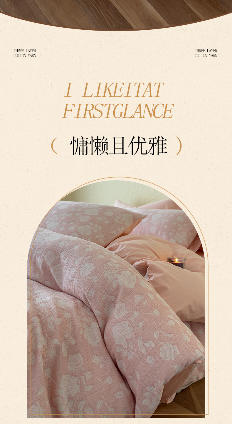 当前位置: 91家纺网 > 商品网购 > 床品套件 > 四件套 > 全棉普通四件套 > 琪格格纺织 2026新款60s纯棉加厚三层纱系列四件套 三层纱 莫奈花园-粉