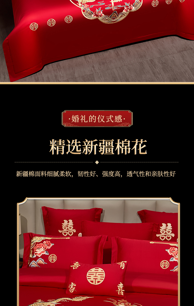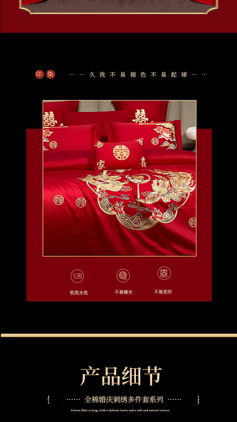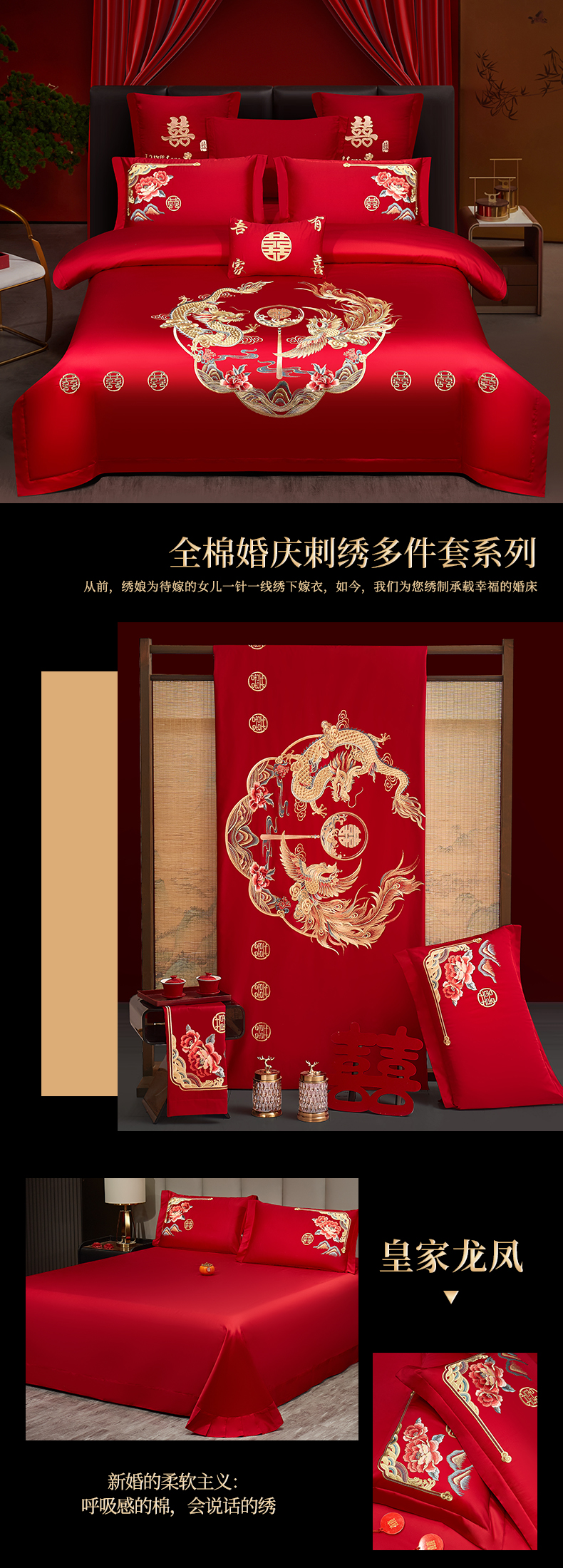 当前位置: 91家纺网 > 商品网购 > 床品套件 > 四件套 > 婚庆四件套 > 浩情国际婚庆供货中心 2026新款100%全棉长绒棉纯棉婚庆四件套结婚刺绣六件套多件套长期供货 (提供买家秀) 皇家龙凤