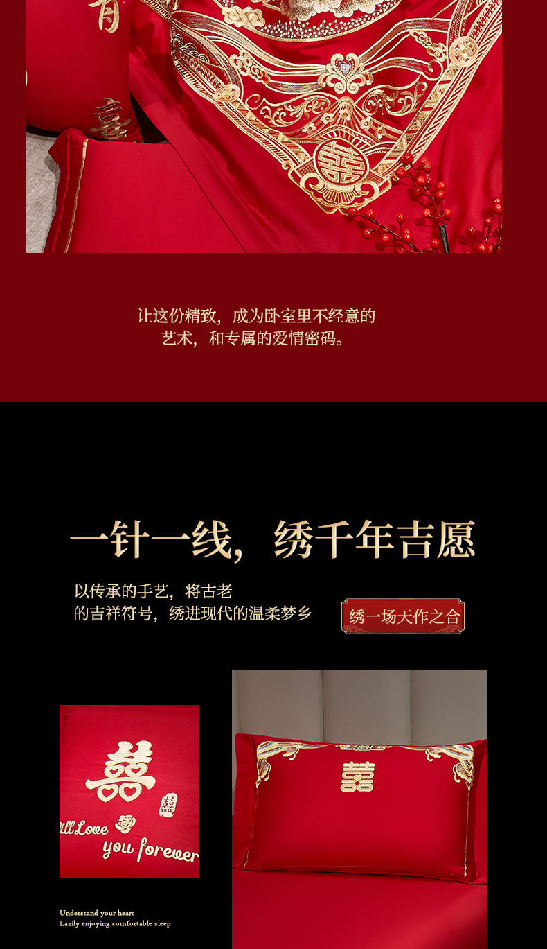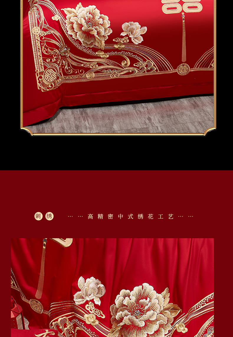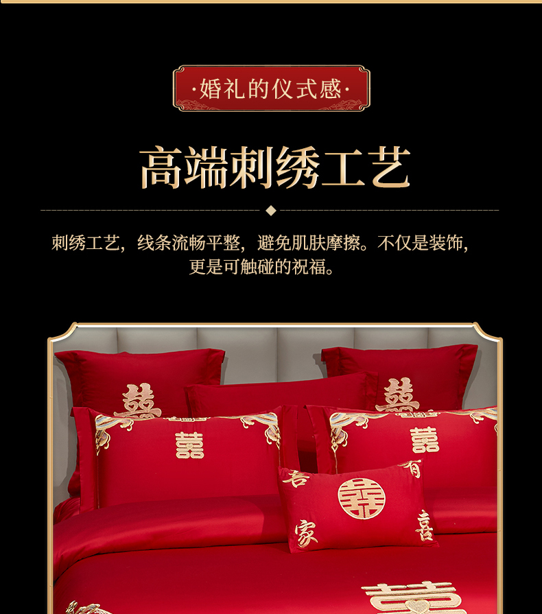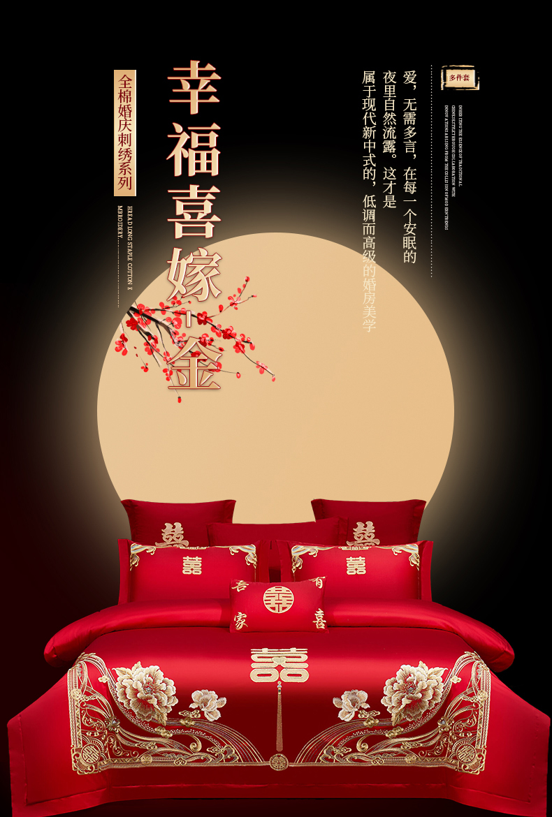 当前位置: 91家纺网 > 商品网购 > 床品套件 > 四件套 > 婚庆四件套 > 浩情国际婚庆供货中心 2026新款100%全棉长绒棉纯棉婚庆四件套结婚刺绣六件套多件套长期供货 (提供买家秀) 幸福喜嫁-金