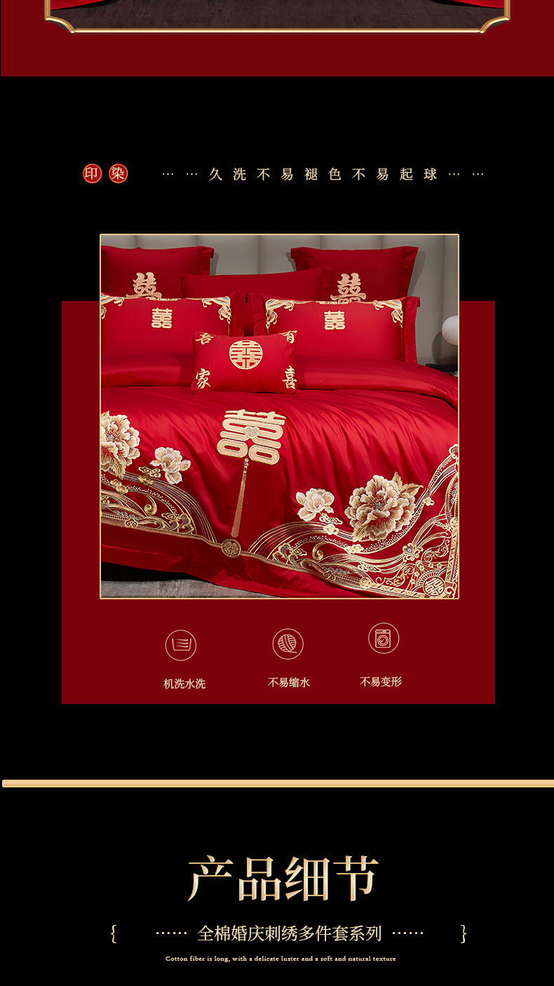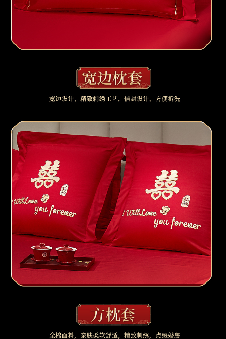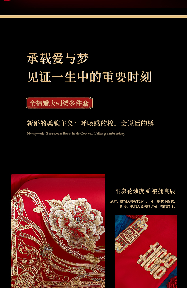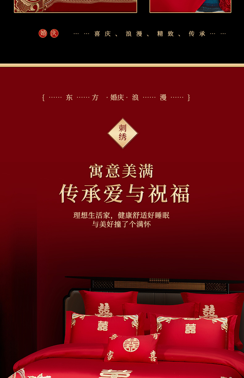 当前位置: 91家纺网 > 商品网购 > 床品套件 > 四件套 > 婚庆四件套 > 浩情国际婚庆供货中心 2026新款100%全棉长绒棉纯棉婚庆四件套结婚刺绣六件套多件套长期供货 (提供买家秀) 幸福喜嫁-金