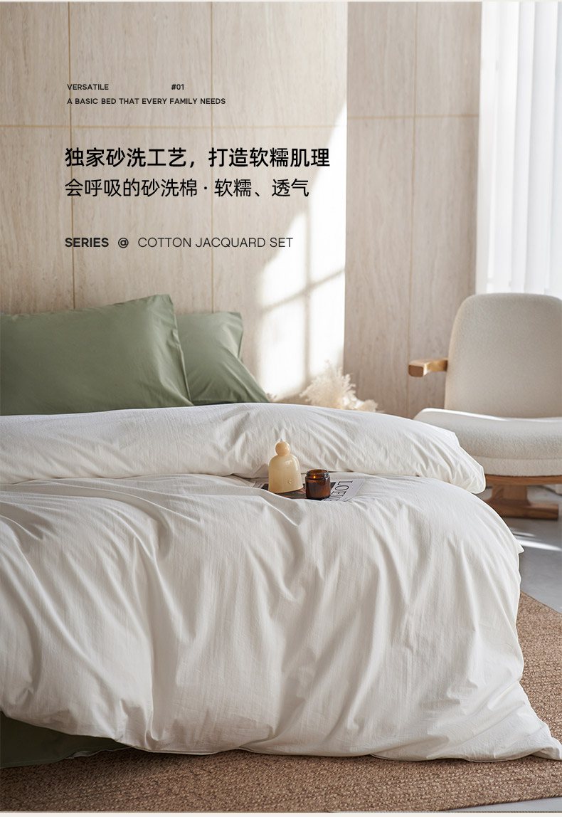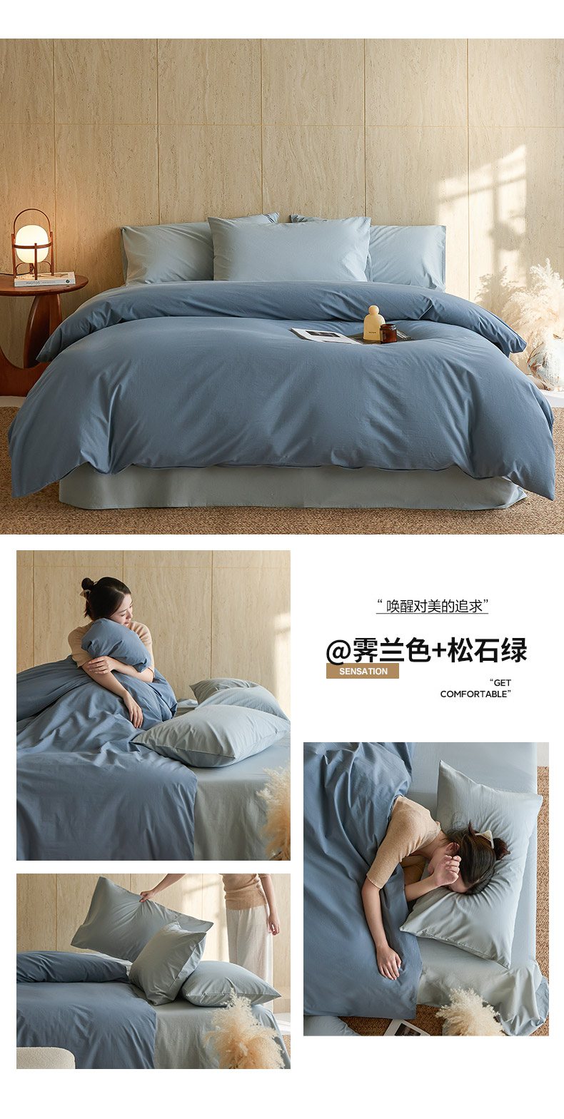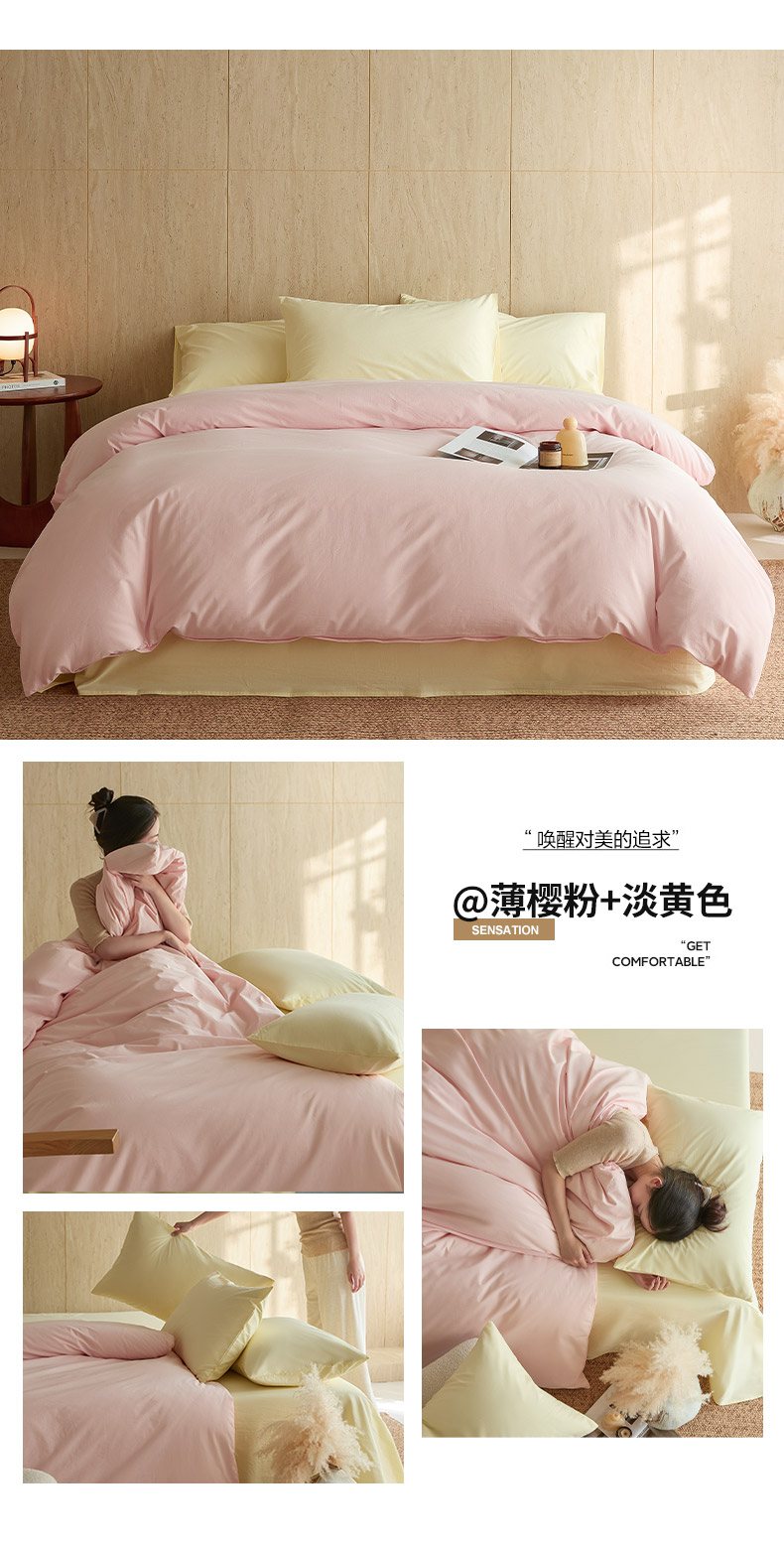 当前位置: 91家纺网 > 商品网购 > 床品套件 > 四件套 > 全棉普通四件套 > 轩和家居 2026新款全棉高支旧感砂洗长绒棉拼色四件套 薄樱粉+浅云白