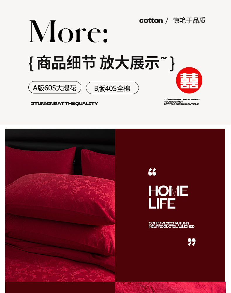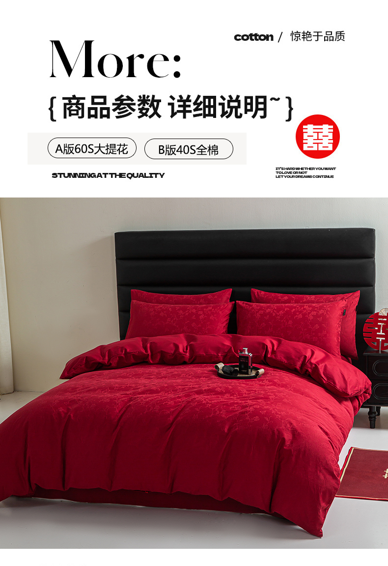 商品名称:卧趣家纺 2026新款全棉贡缎提花红色婚庆纯棉四件套 露柯