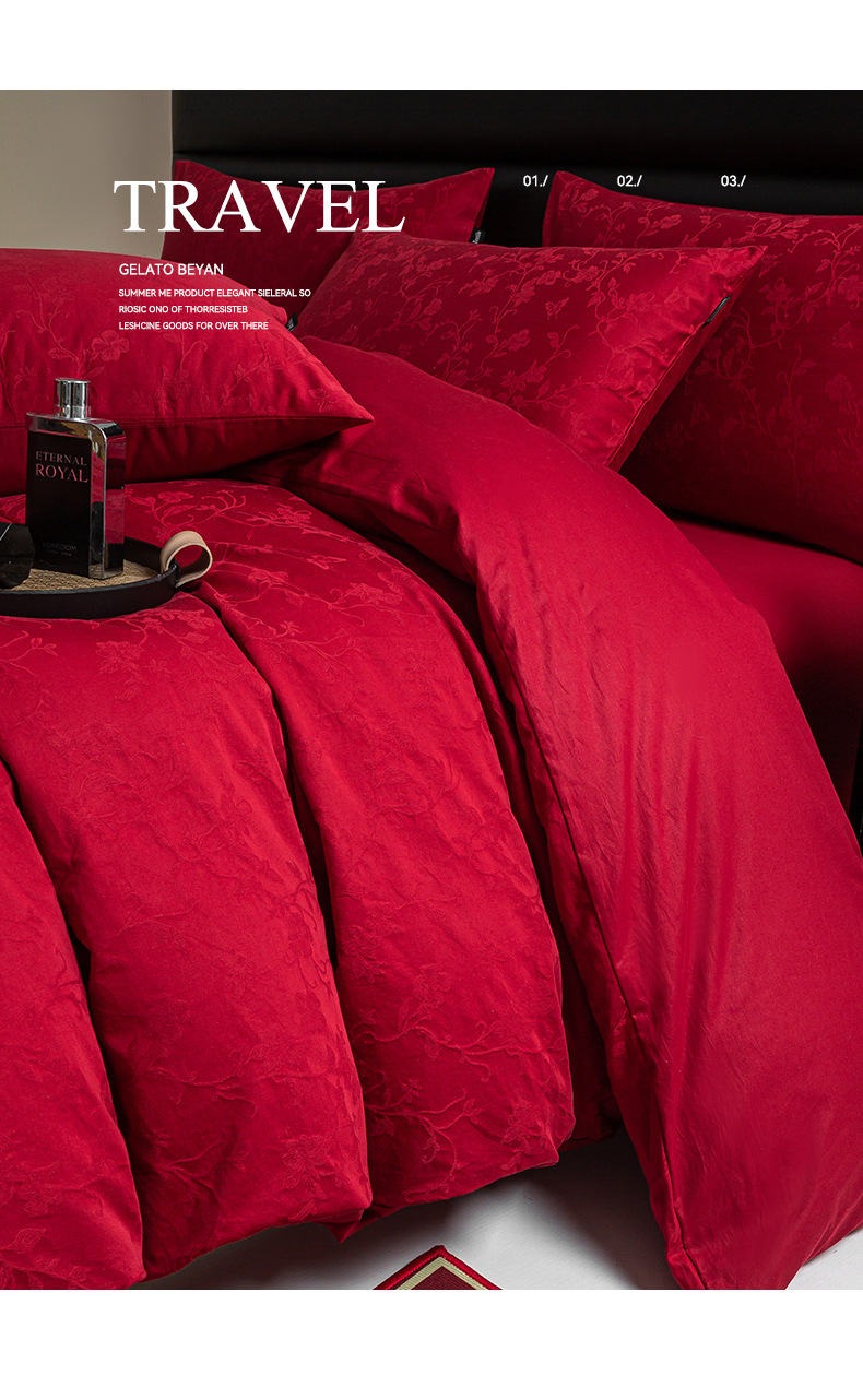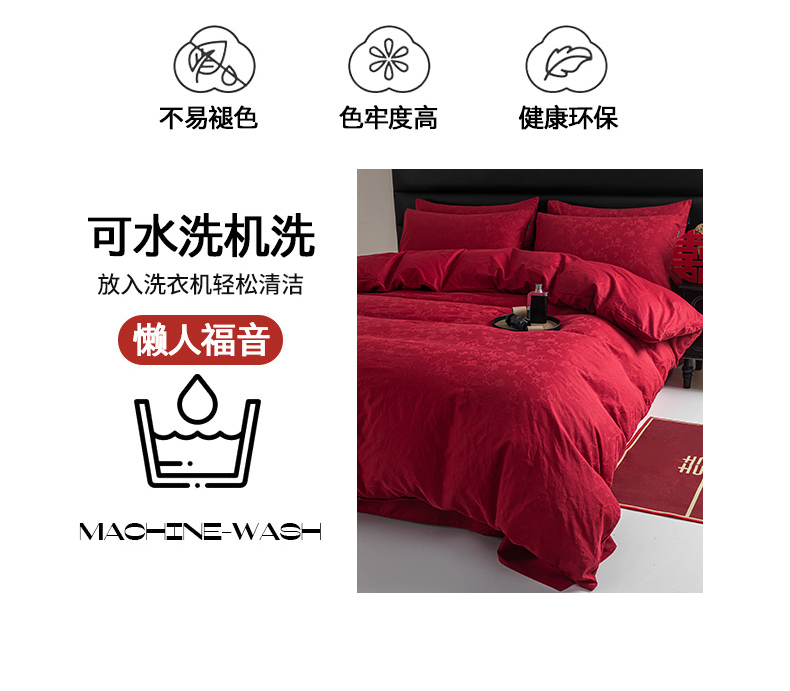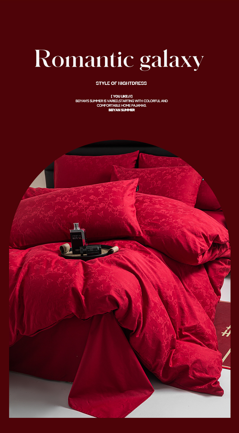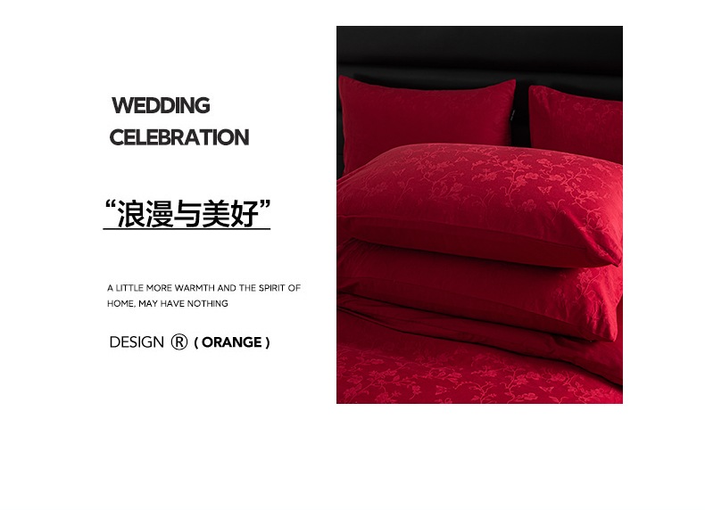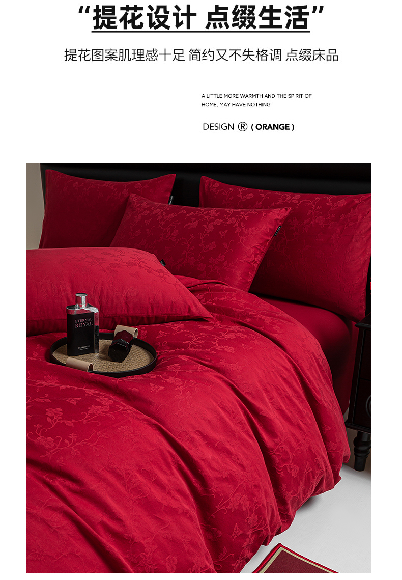 卧趣家纺 2026新款全棉贡缎提花红色婚庆纯棉四件套 露柯