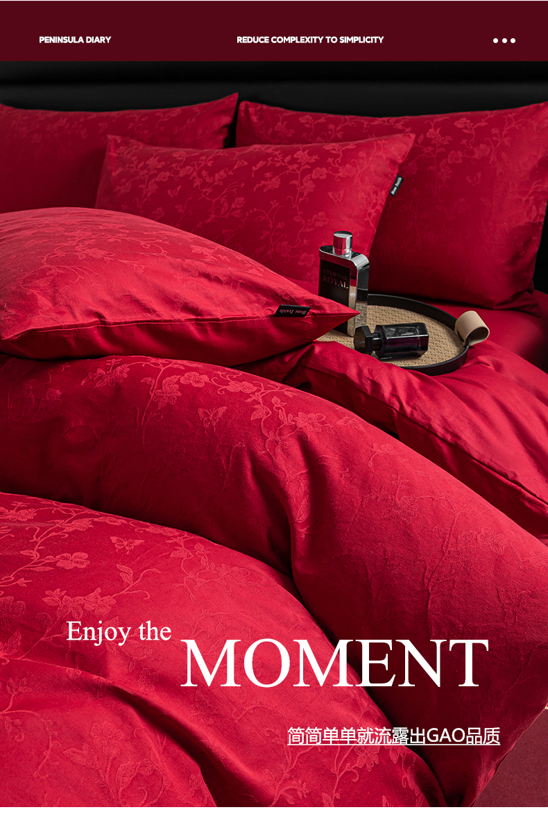 (总)卧趣家纺 2026新款全棉贡缎提花红色婚庆纯棉四件套,花戏蝶,花漾甜心-红,露柯,玫香,岁月留声