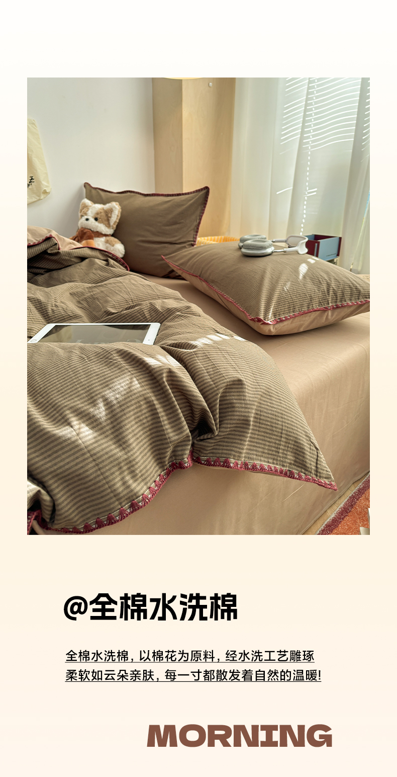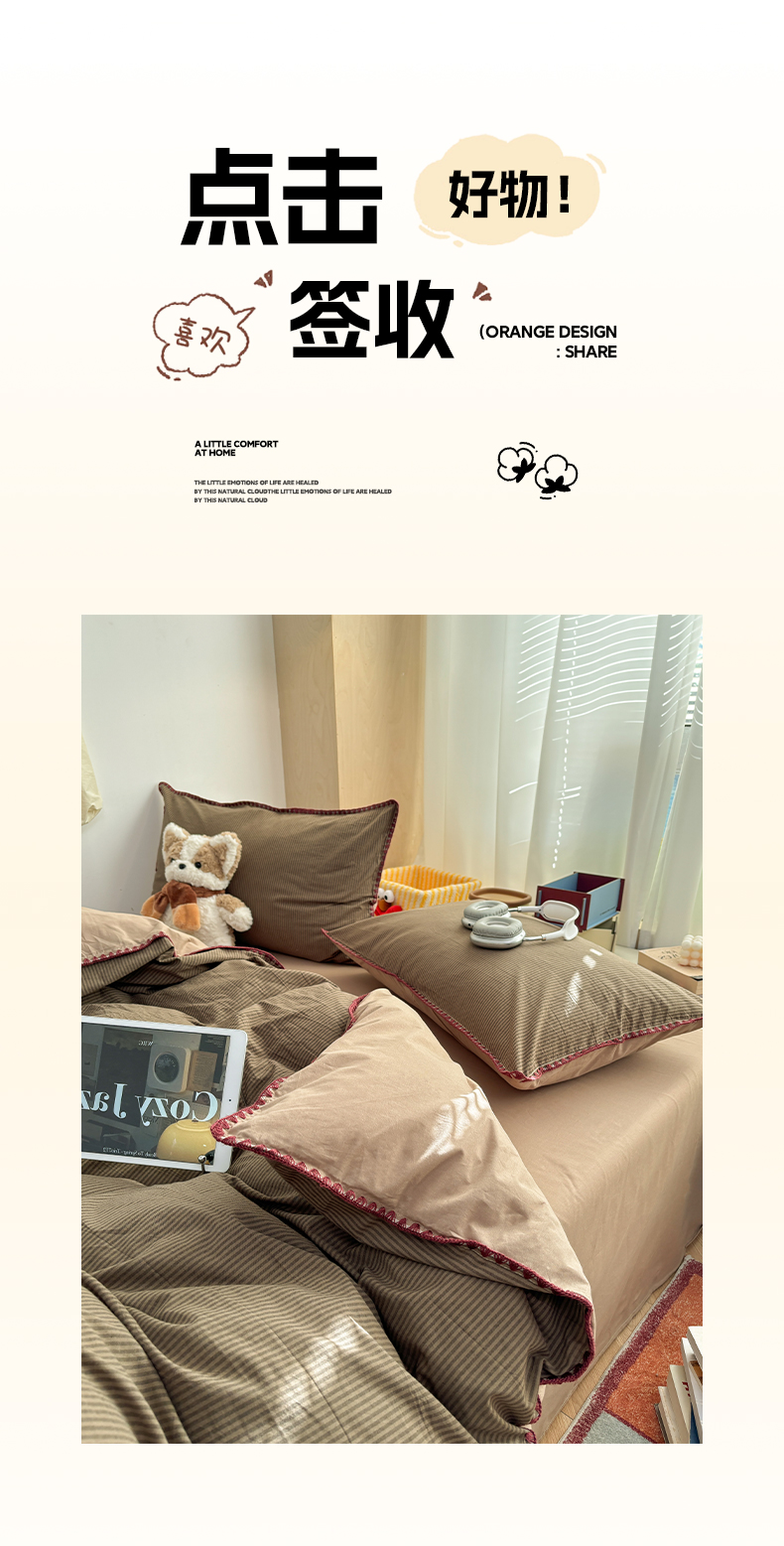 当前位置: 91家纺网 > 商品网购 > 床品套件 > 四件套 > 全棉普通四件套 > 雅居纺家纺 2026新款全棉色织水洗棉贝壳边四件套 贝壳边-卡其密条