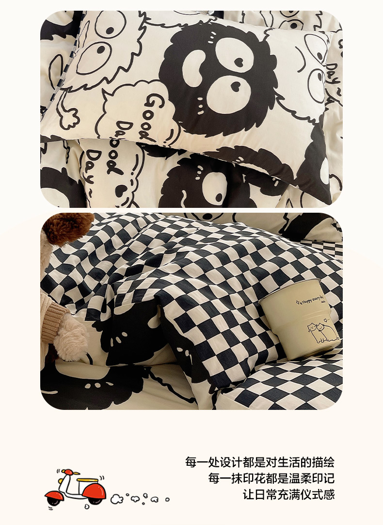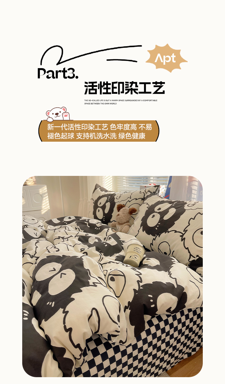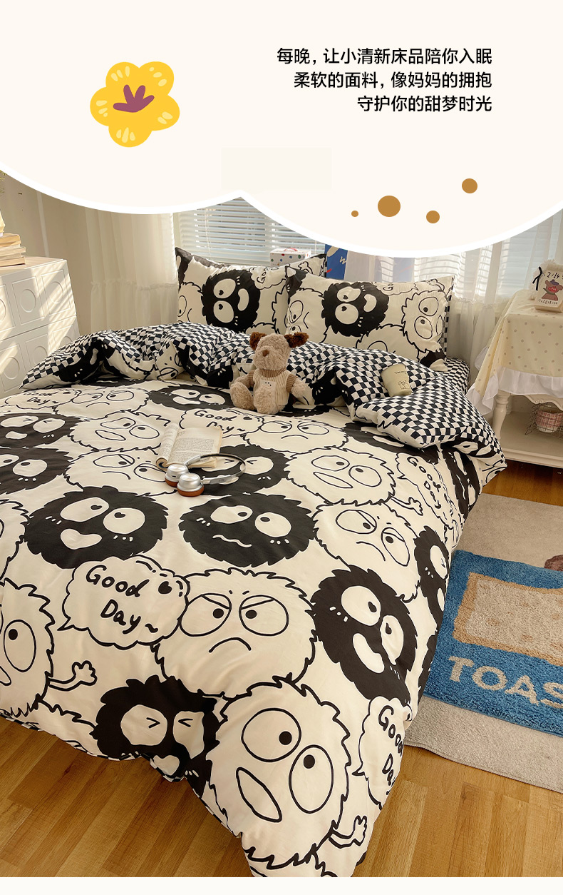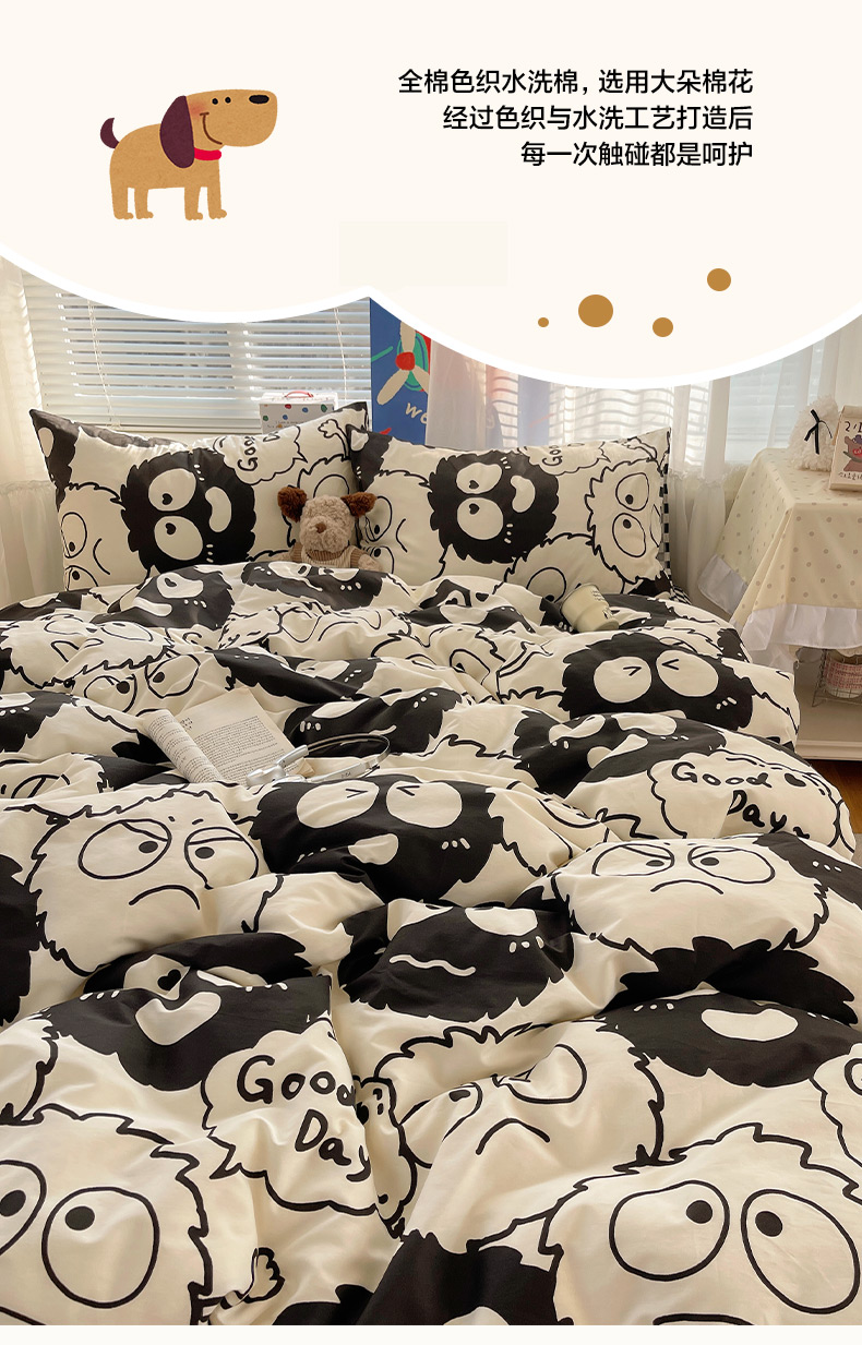 商品名称:雅居纺家纺 2026新款全棉小清新印花四件套 贪玩家族