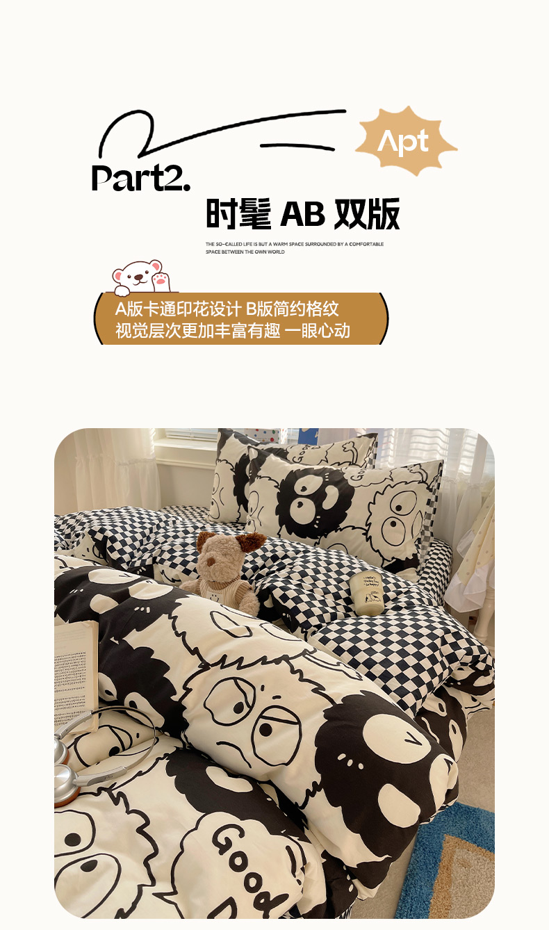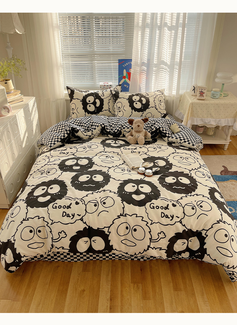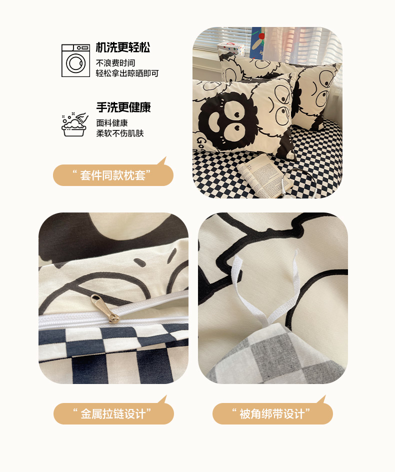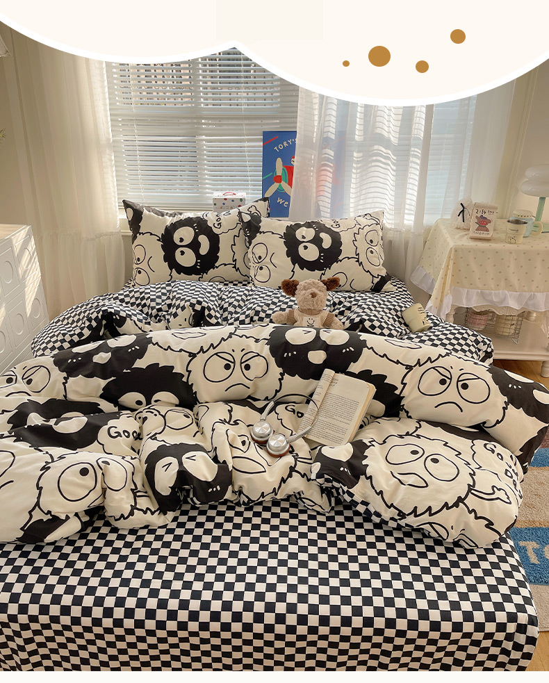 商品名称:雅居纺家纺 2026新款全棉小清新印花四件套 贪玩家族