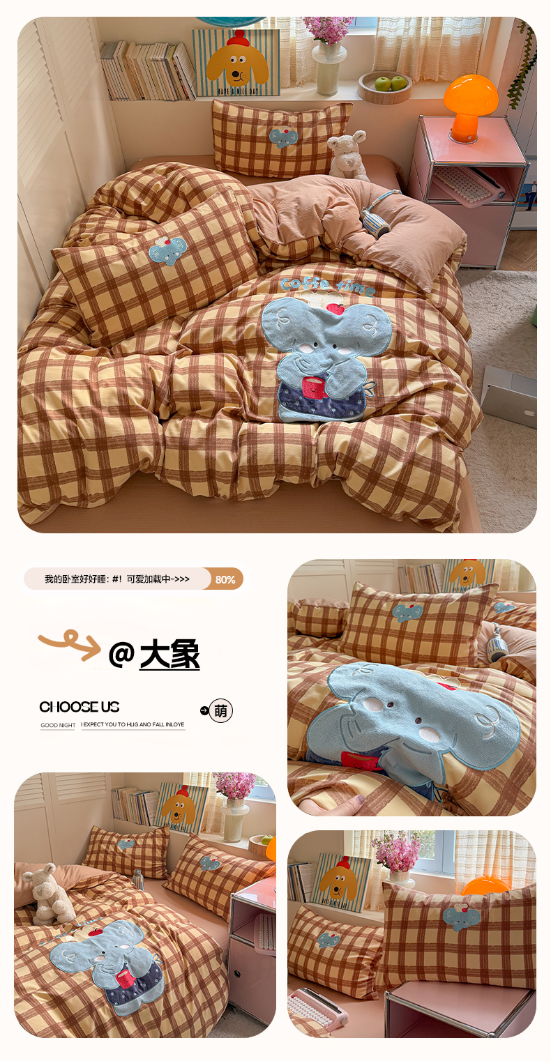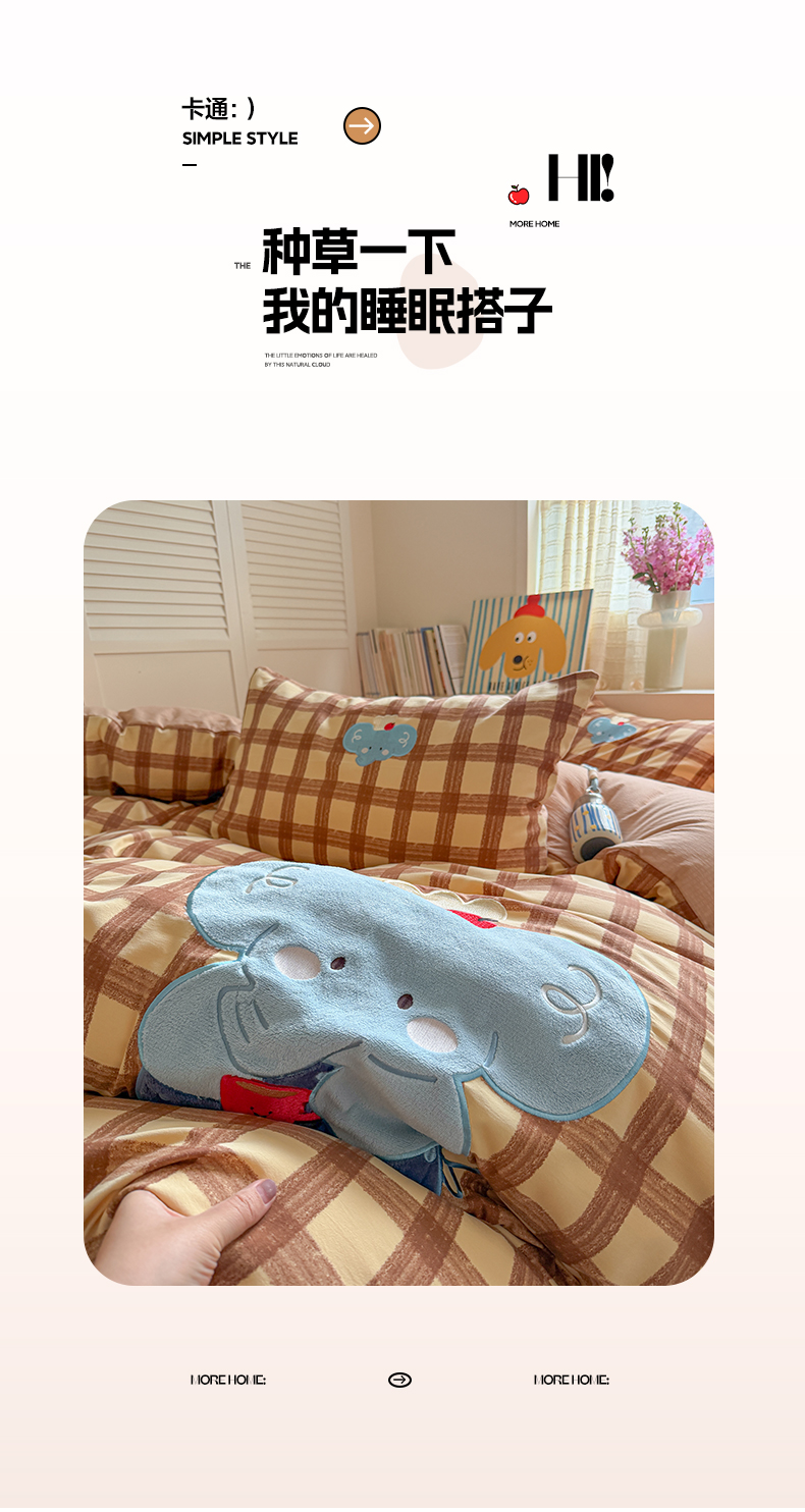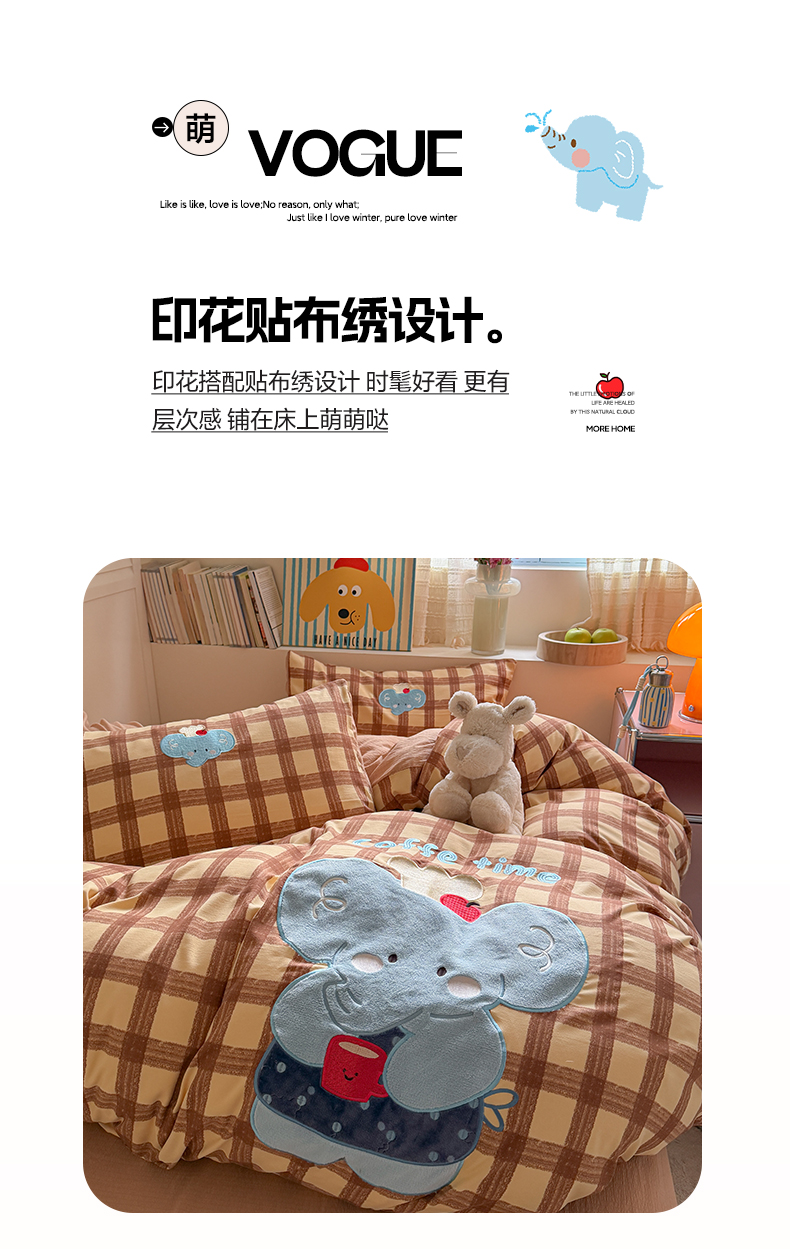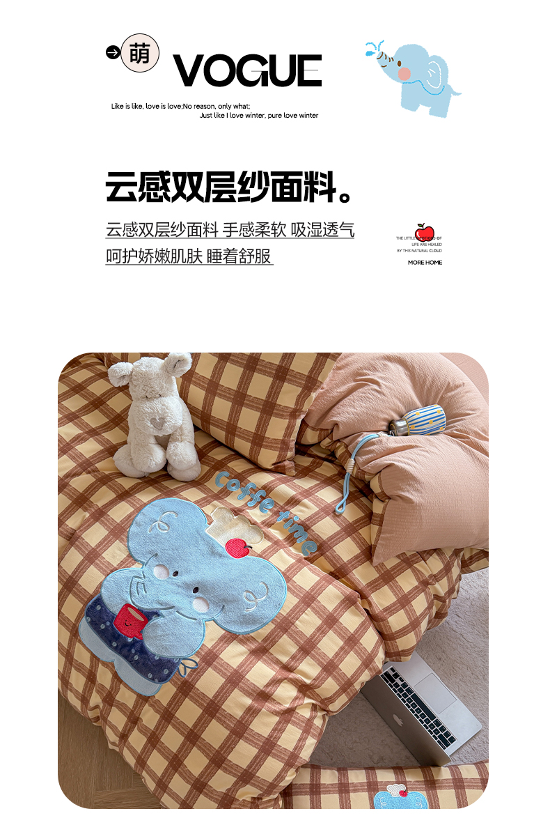 美乐迪家纺 2026新款贴布绣云感双层纱四件套 大象