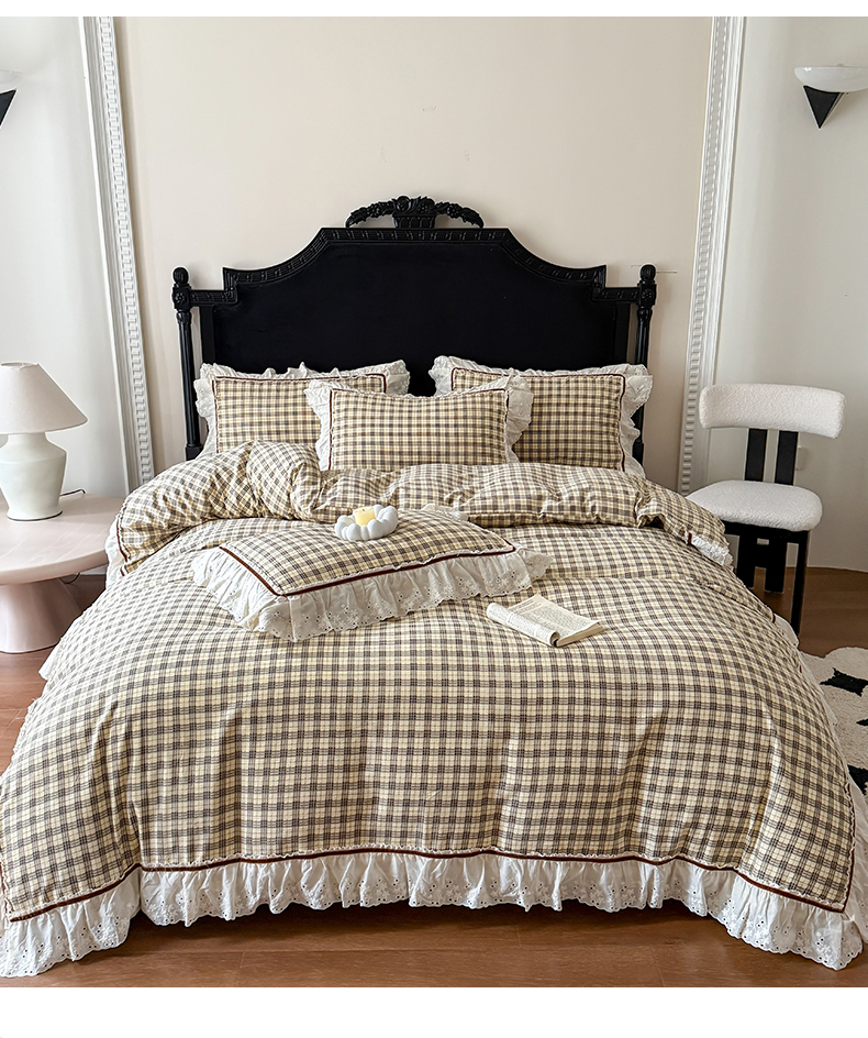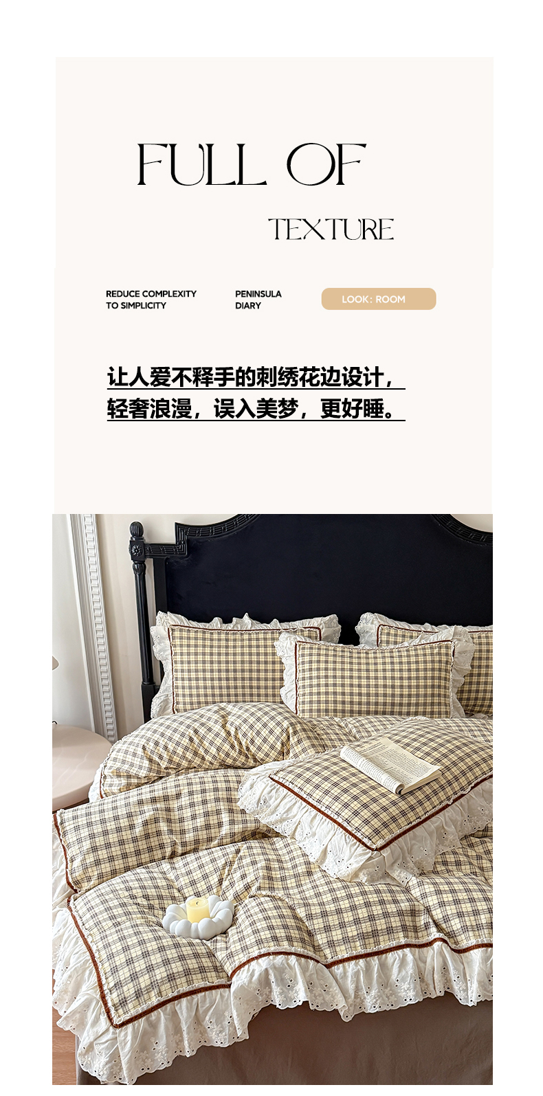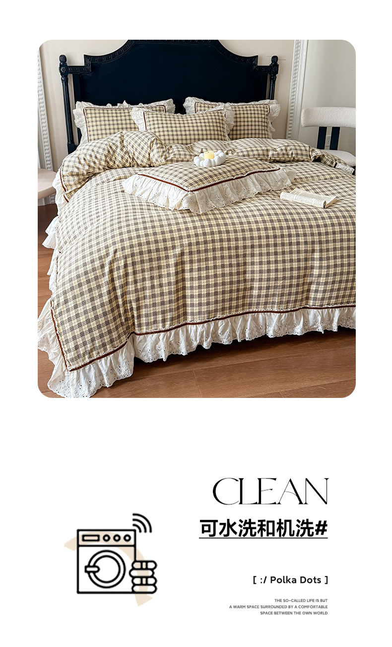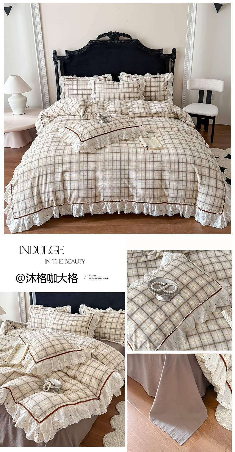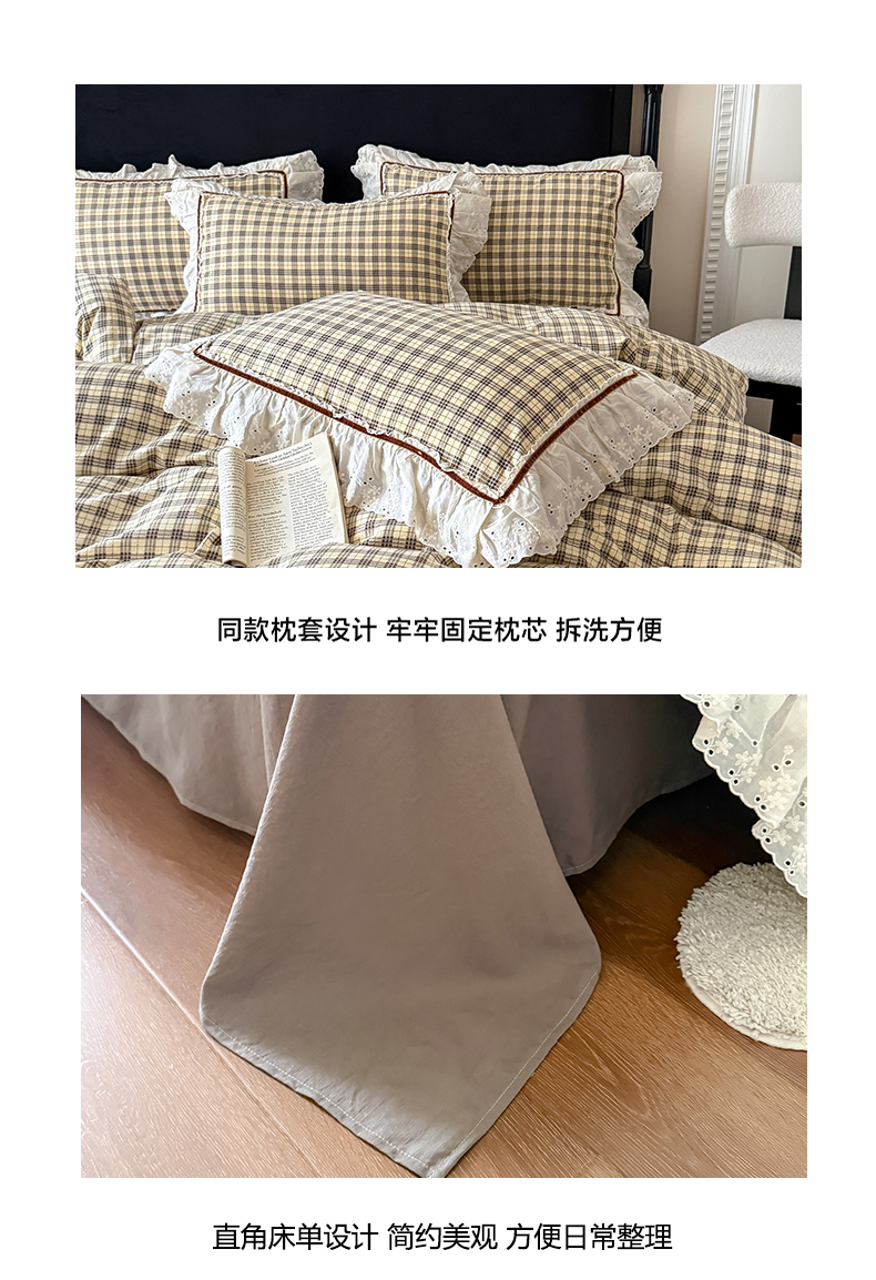 当前位置: 91家纺网 > 商品网购 > 床品套件 > 四件套 > 其它四件套 > 你好美丽 2026新款韩版刺绣水洗沐格简麻花边系列四件套 沐格咖小格