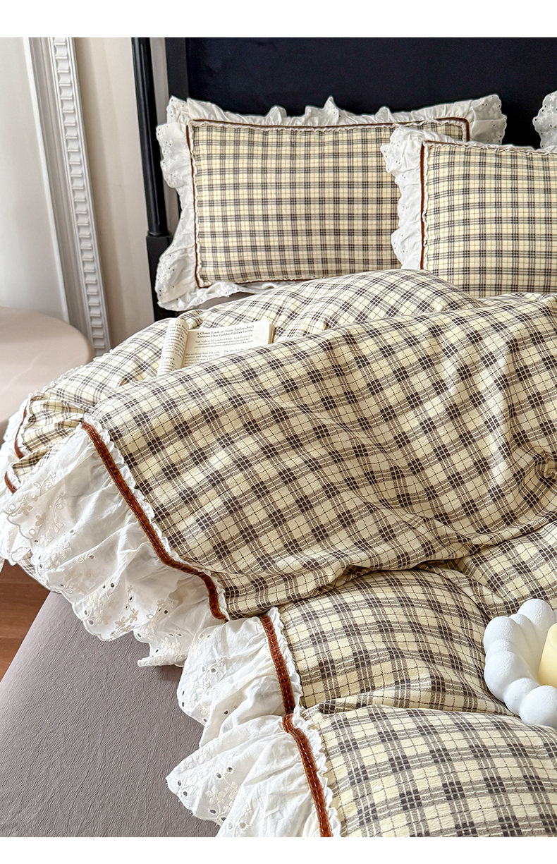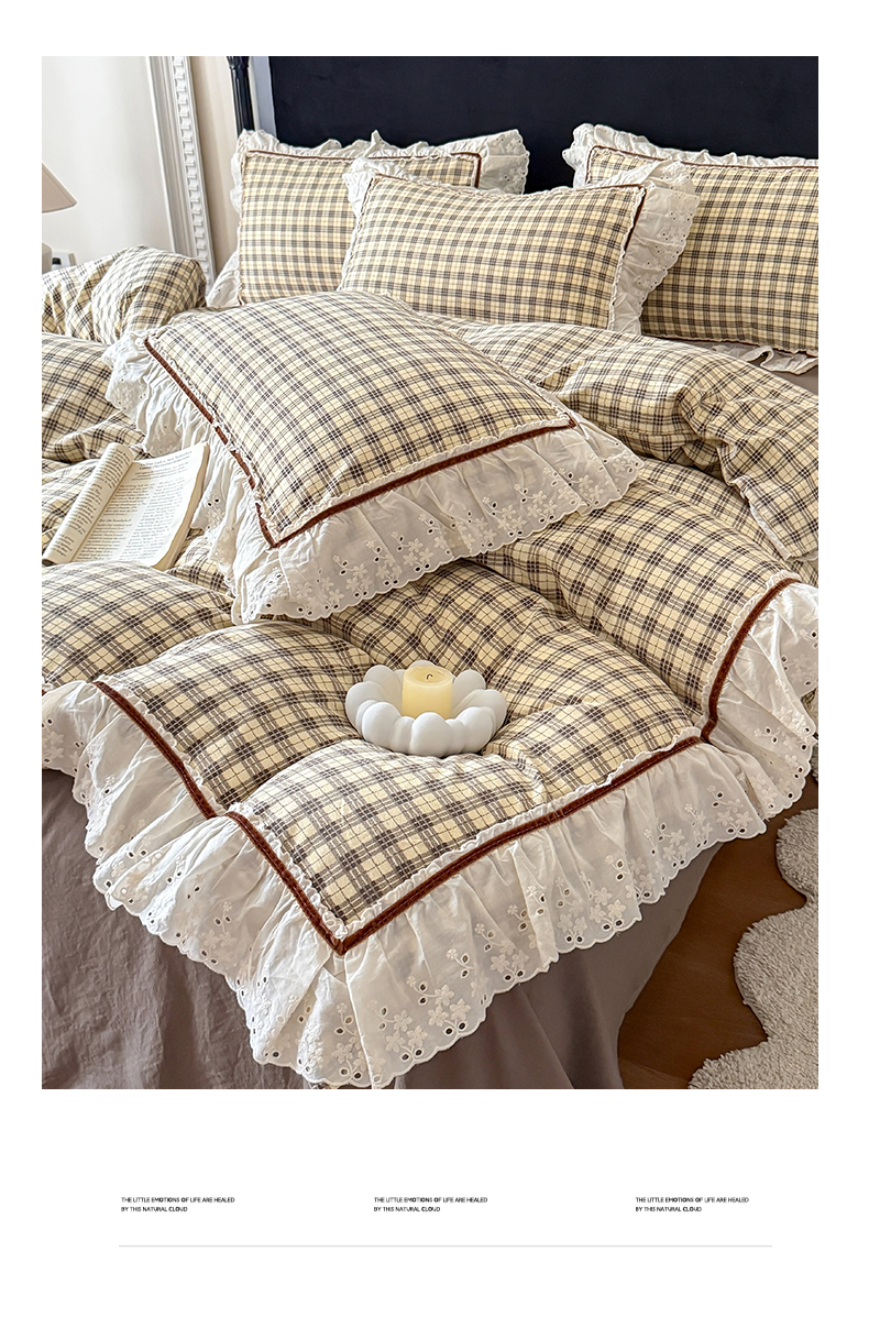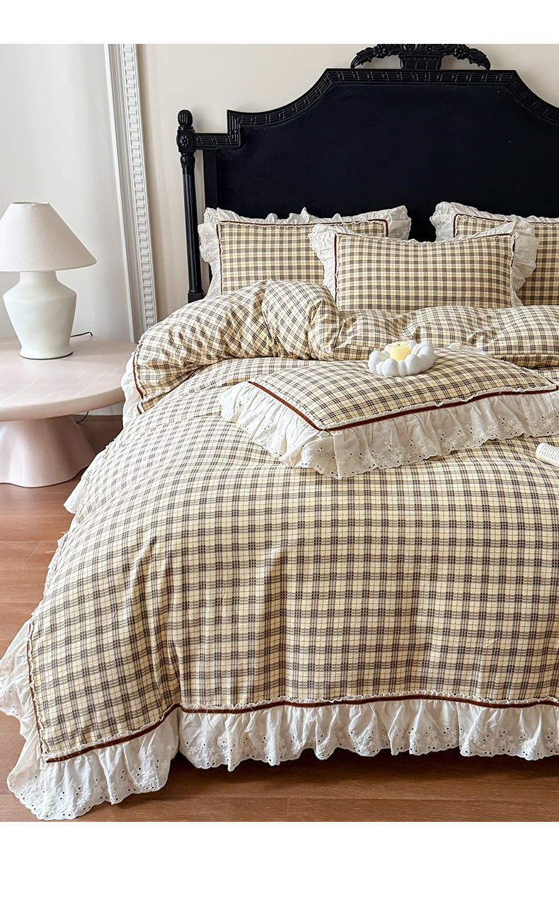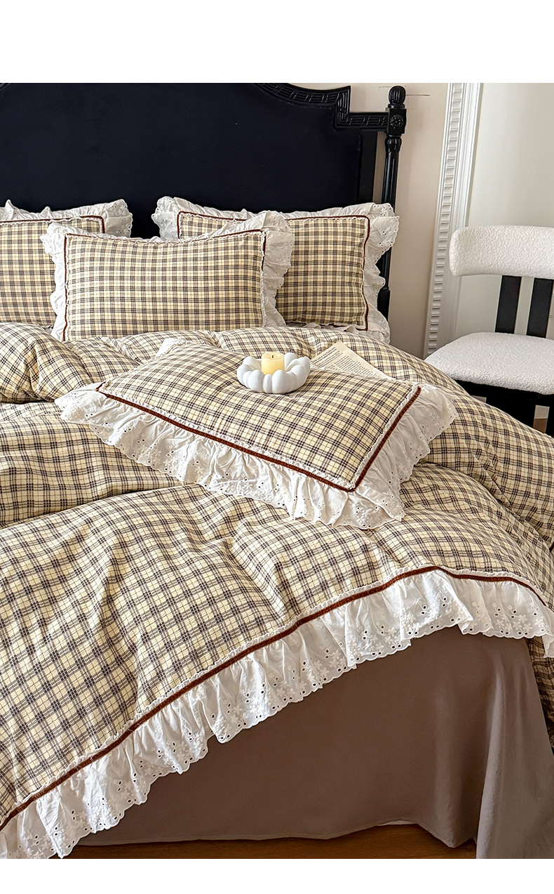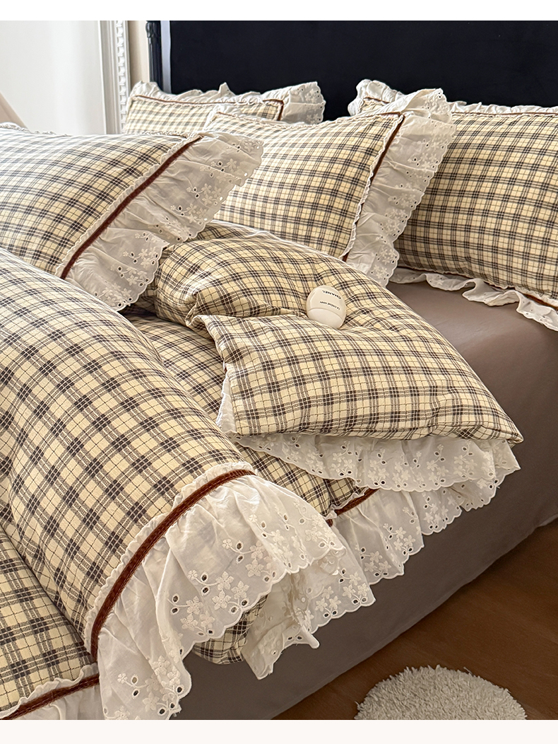 当前位置: 91家纺网 > 商品网购 > 床品套件 > 四件套 > 其它四件套 > 你好美丽 2026新款韩版刺绣水洗沐格简麻花边系列四件套 沐格咖小格