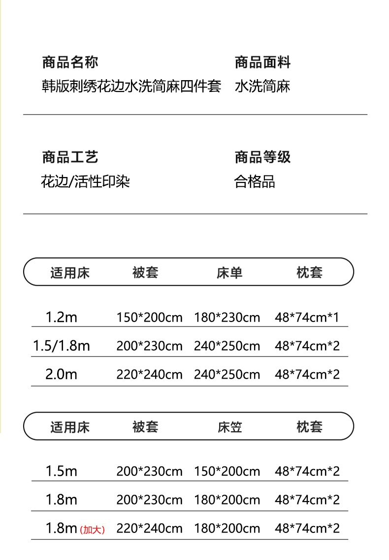 1.8m床笠款被套加大四件套 | ¥105.00 |