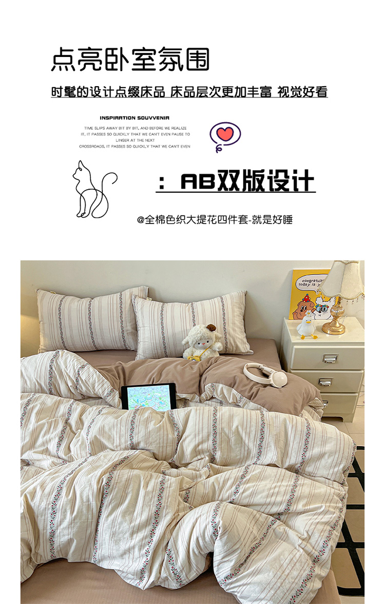(总)爱丽丝 2026新款全棉色织提花四件套,风吹穗绒-灰,风吹穗绒-卡其,蝴蝶花影-灰,蝴蝶花影-卡其,简雅几何-豆沙,简雅几何-灰,暮光蒲英-豆沙,暮光蒲英-灰,屋顶花园-豆沙,屋顶花园-卡其,枝繁叶茂-粉,枝繁叶茂-蓝,几何菱形-灰色,几何菱形-咖色,琼枝玉叶-粉玉,琼枝玉叶-雅兰,银杏叶-豆沙,银杏叶-灰色