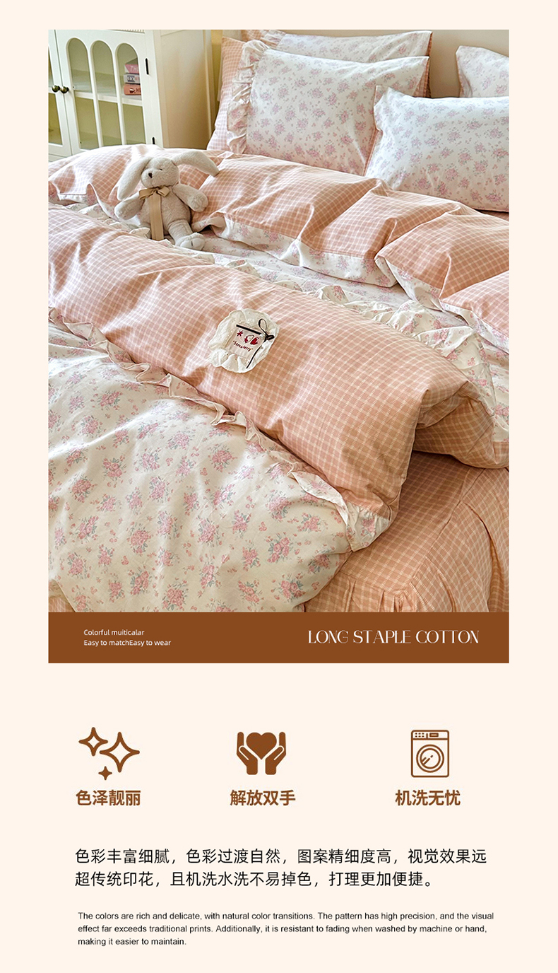 (总)玉元坊 2026新款全棉纯棉小碎花刺绣花边款四件套田园公主风系列,爱相随兰,花漾结缘,青鸾绿,柔情花梦粉,桃之夭夭,乡村爱情,小狗乐园,长安时刻
