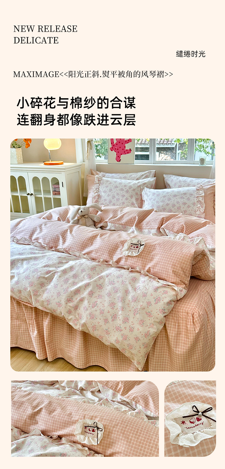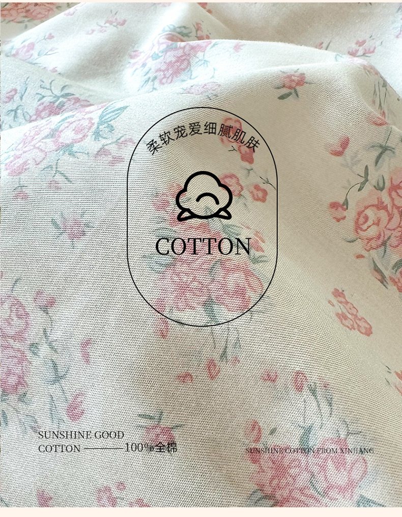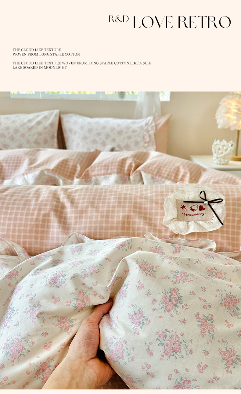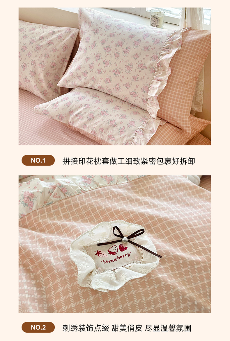 商品名称:玉元坊 2026新款全棉纯棉小碎花刺绣花边款四件套田园公主风系列 柔情花梦粉