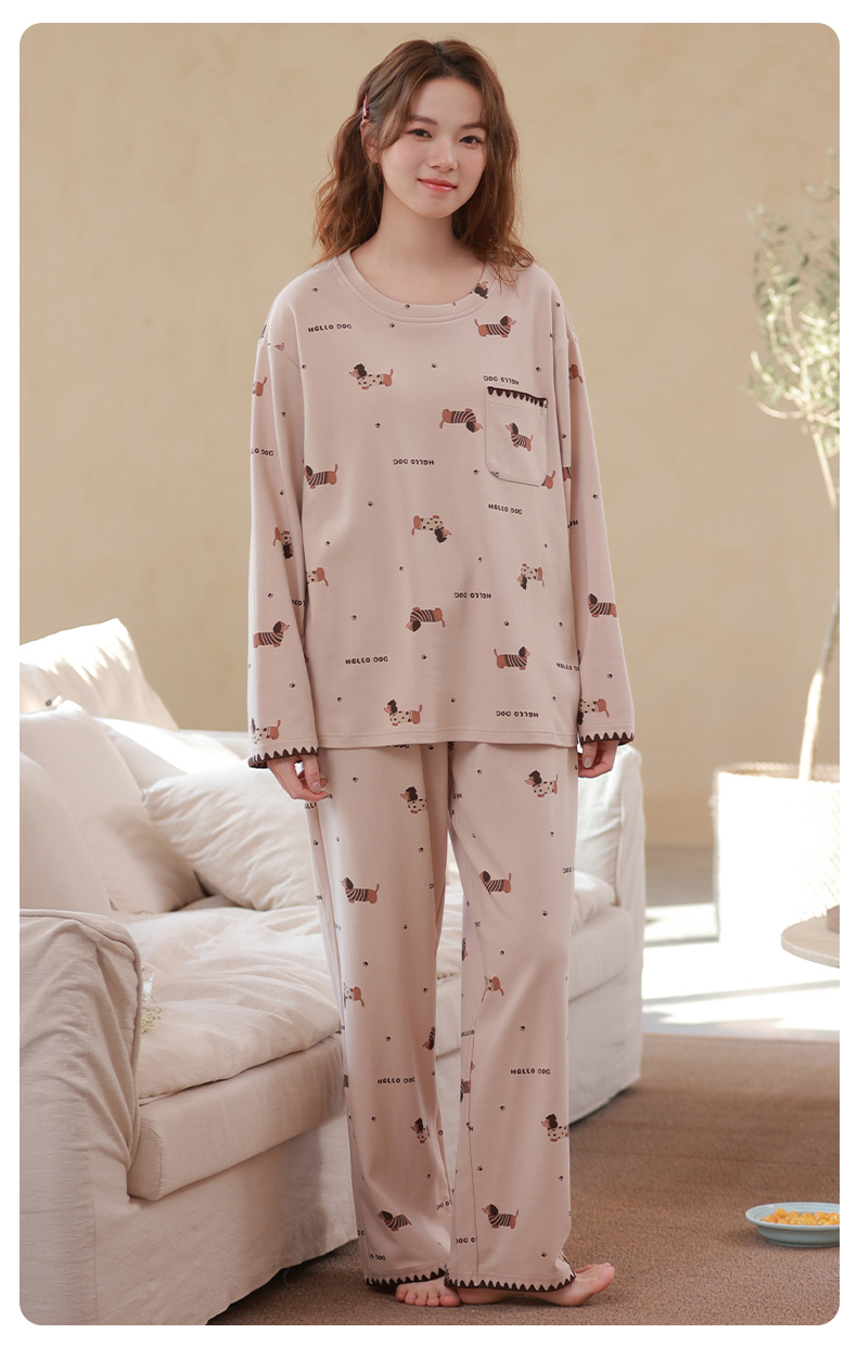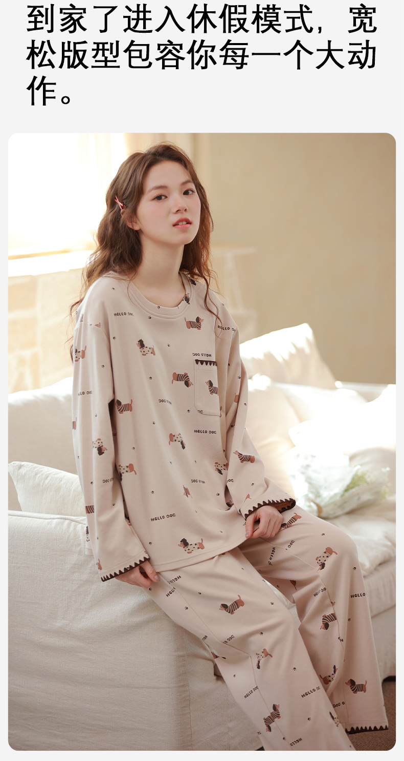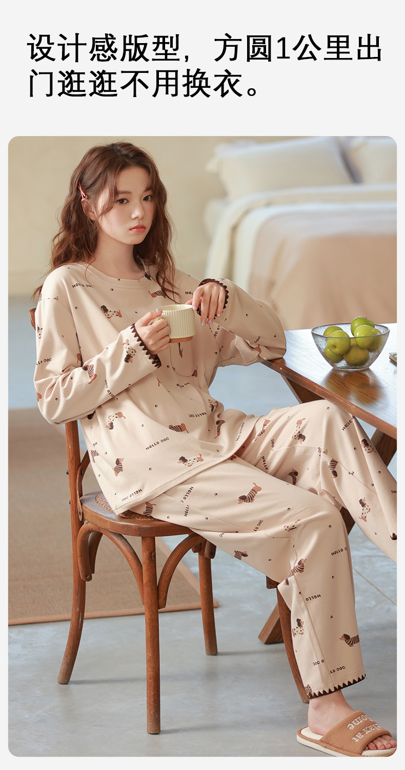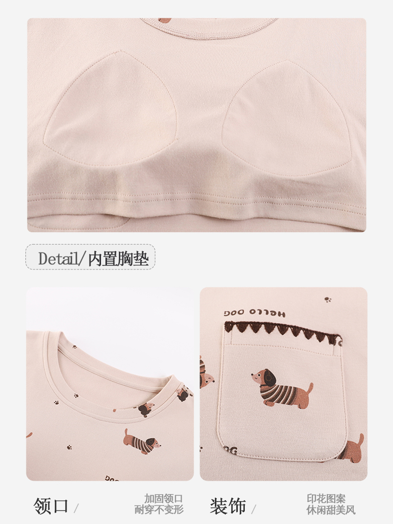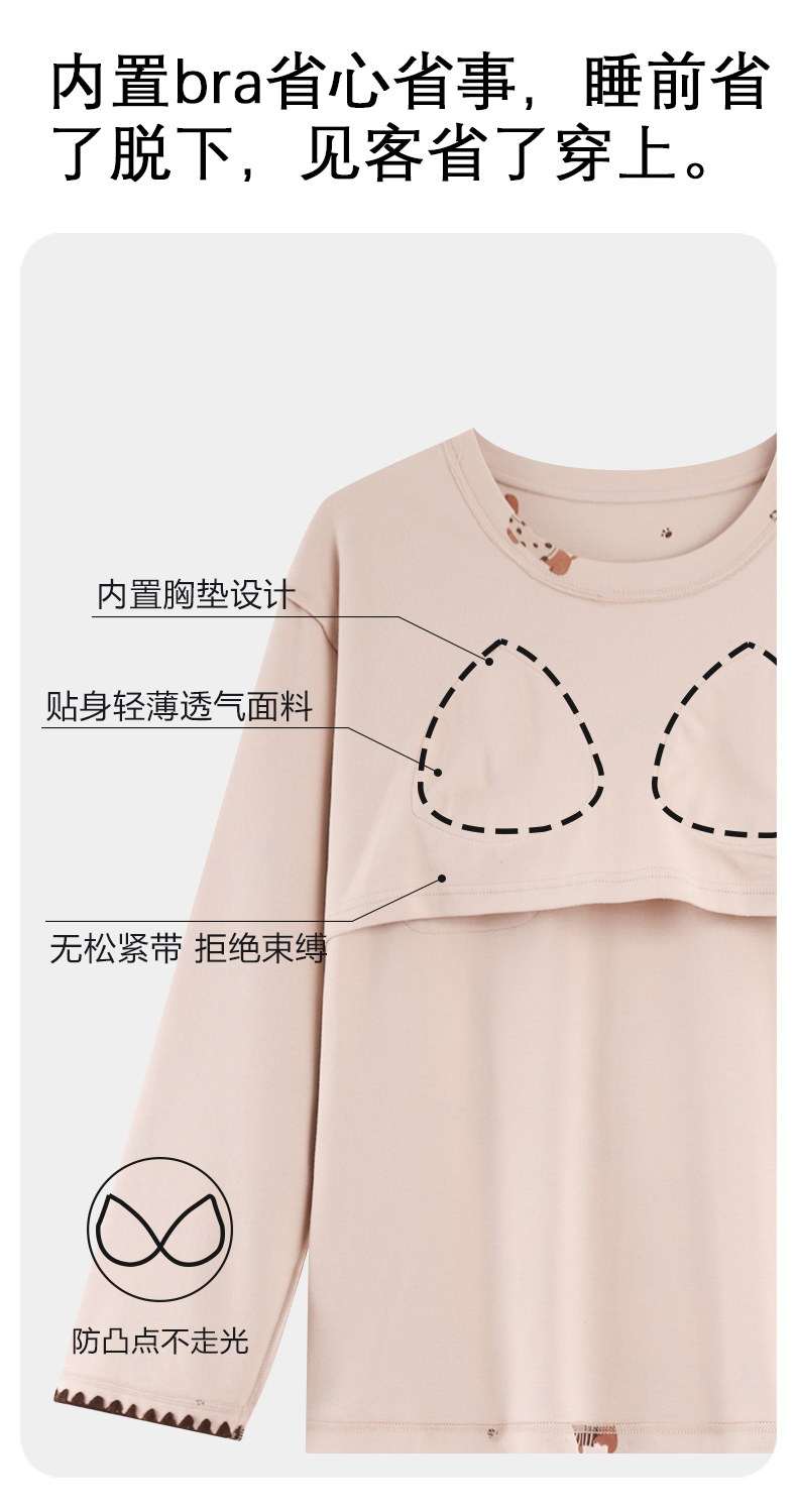 (总)洛兰沙家居馆 2026春季新款自带胸垫纯棉居家睡衣女长袖套头可爱家居服套装 第二批