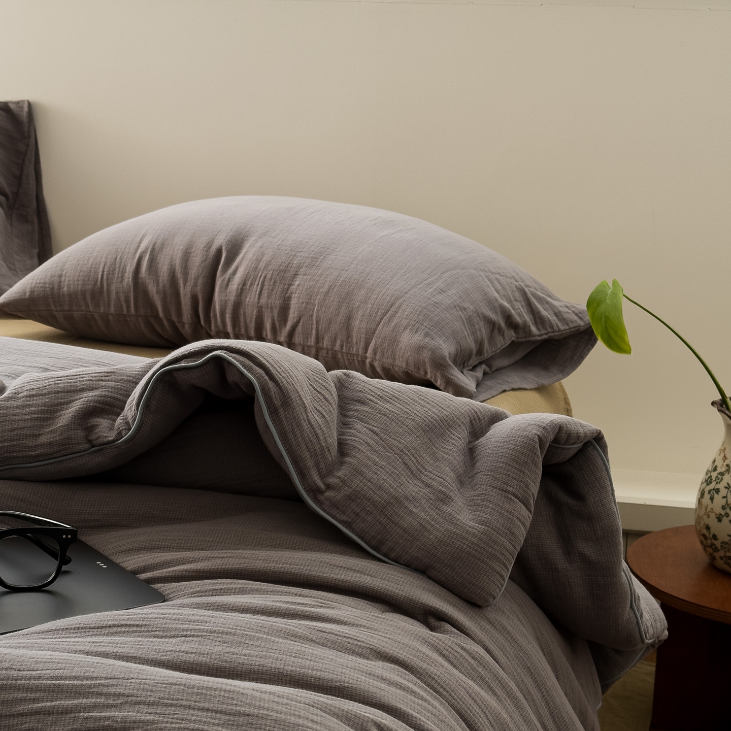 商品名称:仰望棉麻双层纱供应链 2025新款弥山AA版全棉色织提花双层纱春秋被冬被被子被芯 弥山-灰