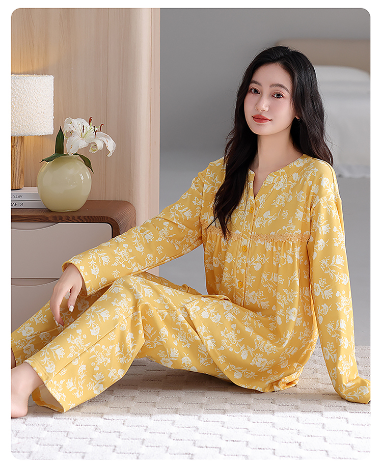 (总)洛兰沙家居馆 2026新款长袖睡衣女款纯棉春季印花开衫翻领家居服可外穿套装 第二批,45145,45146,45147