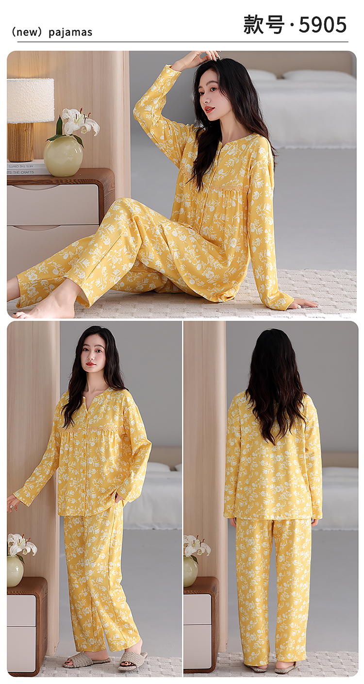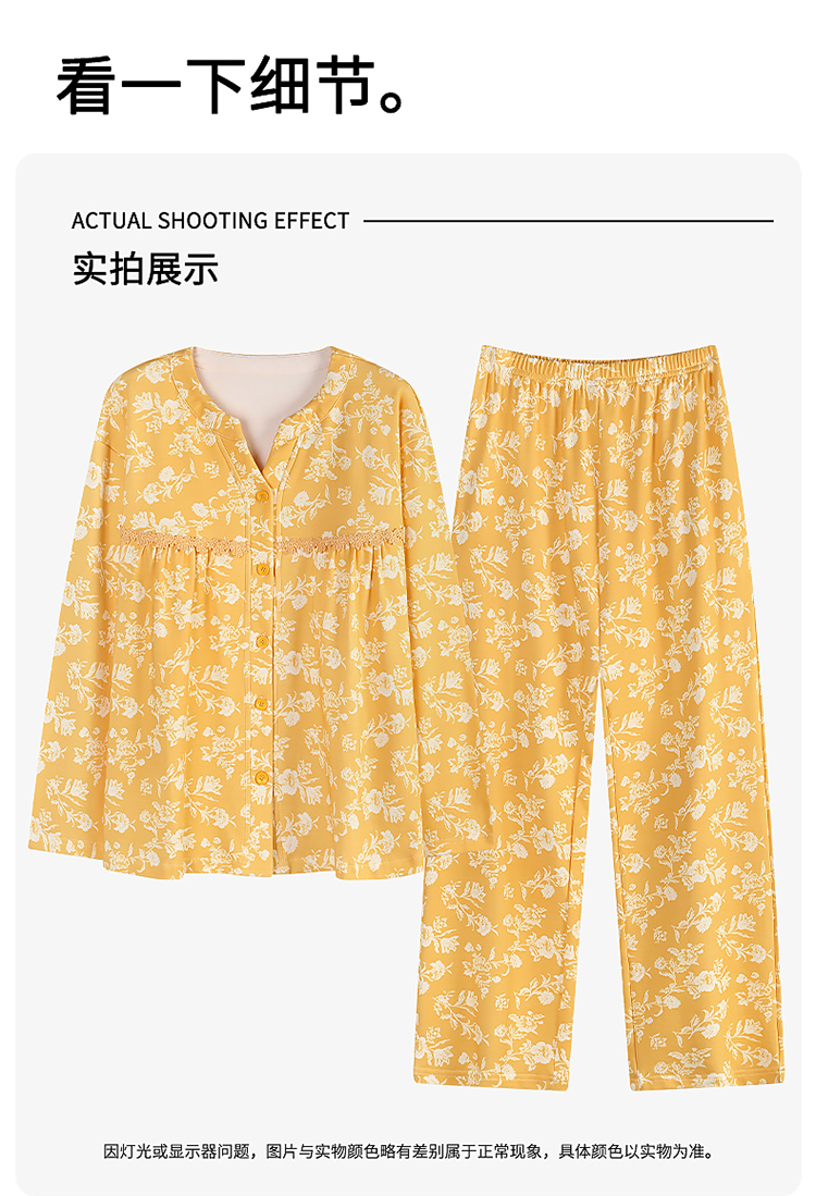 商品名称:洛兰沙家居馆 2026新款秋冬睡衣女拉架棉带胸垫可外穿长袖长裤青中年女士家居服套装第12批 5905