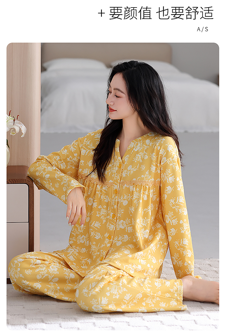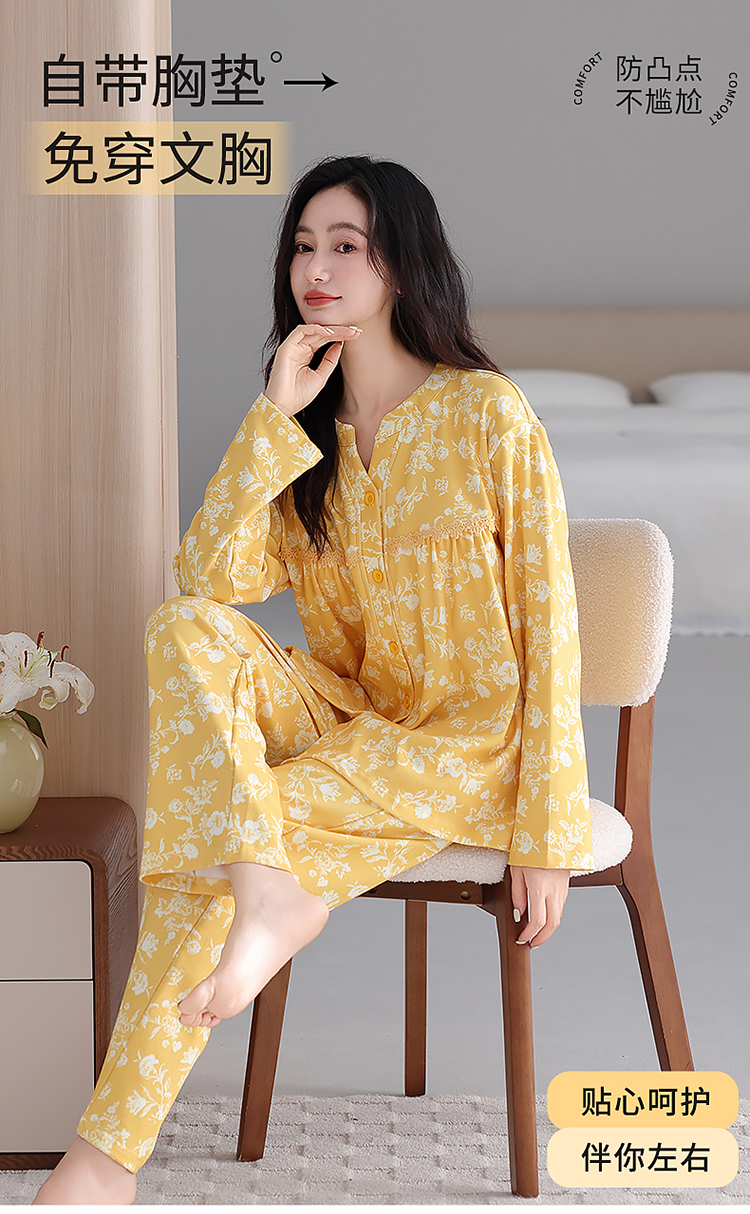 洛兰沙家居馆 2026新款秋冬睡衣女拉架棉带胸垫可外穿长袖长裤青中年女士家居服套装第12批 5905