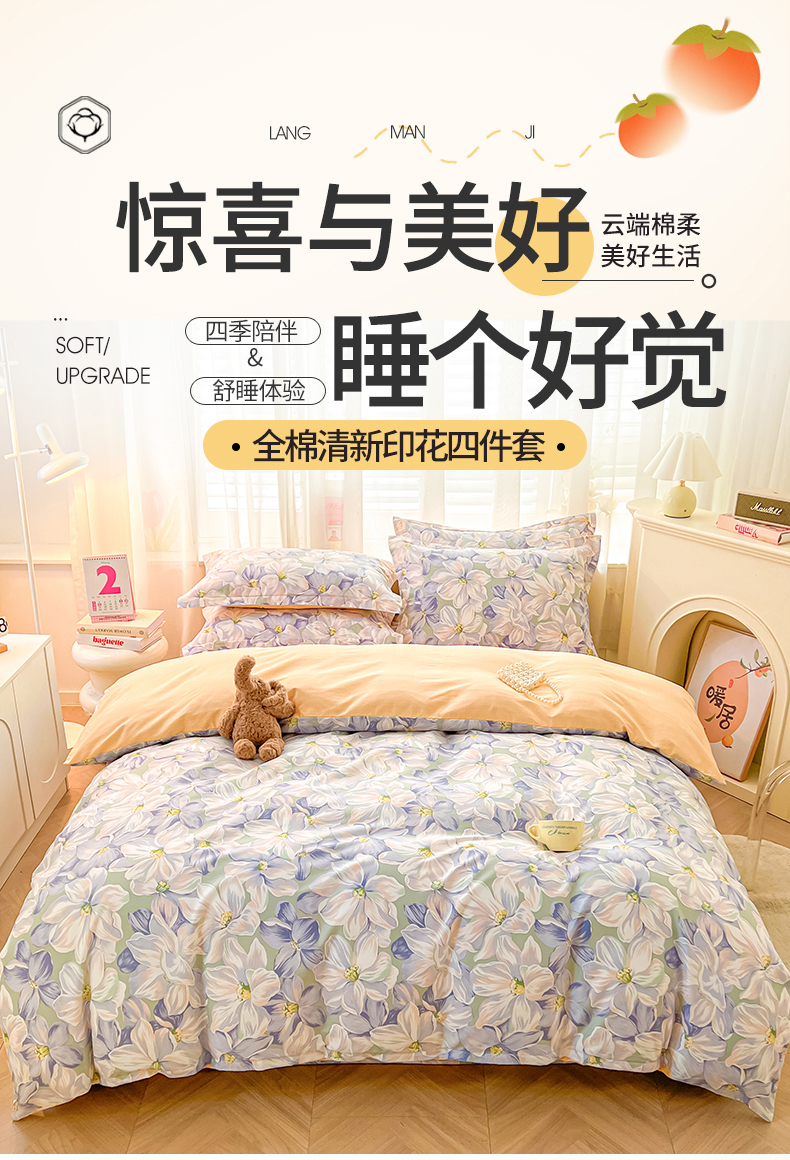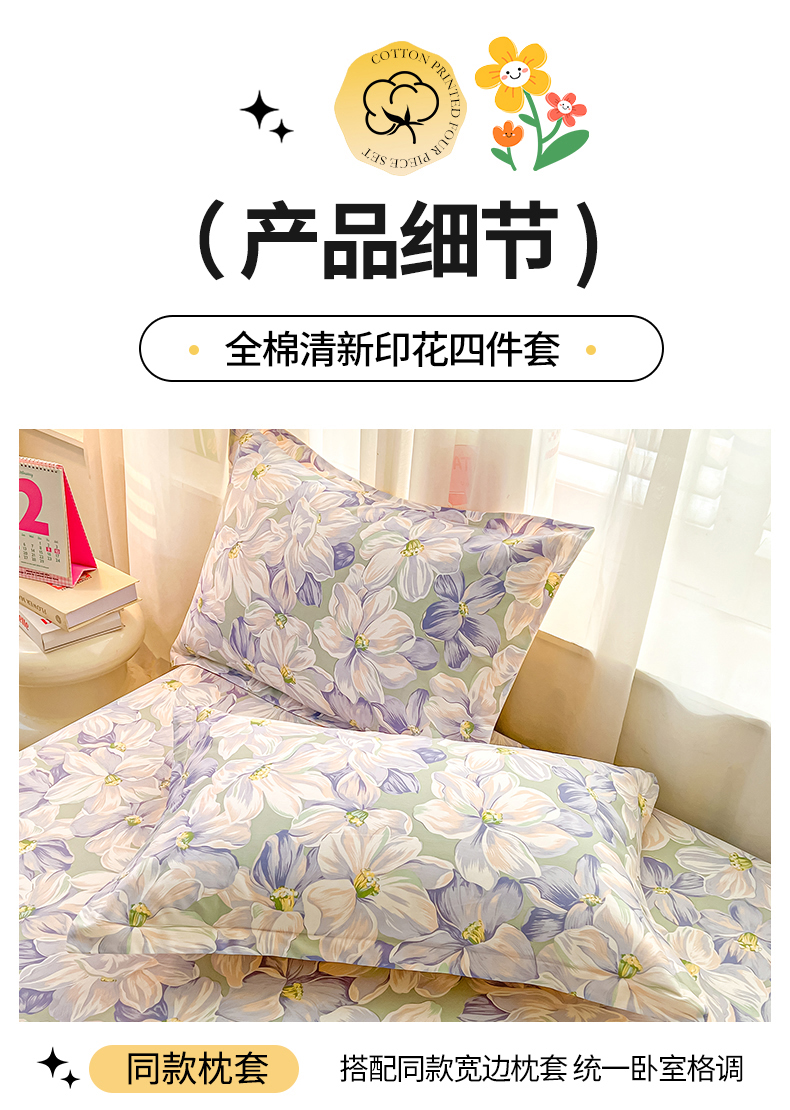 当前位置: 91家纺网 > 商品网购 > 床品套件 > 四件套 > 全棉普通四件套 > 珂博家纺 2026新款小碎花纯棉12868四件套全棉学生三件套场景二 梦里繁花