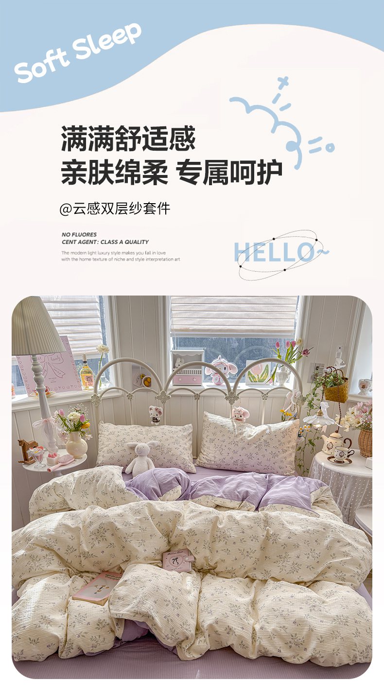 当前位置: 91家纺网 > 商品网购 > 床品套件 > 四件套 > 其它四件套 > 海岛哥哥 2026新款云感双层纱系列四件套 可爱三小只